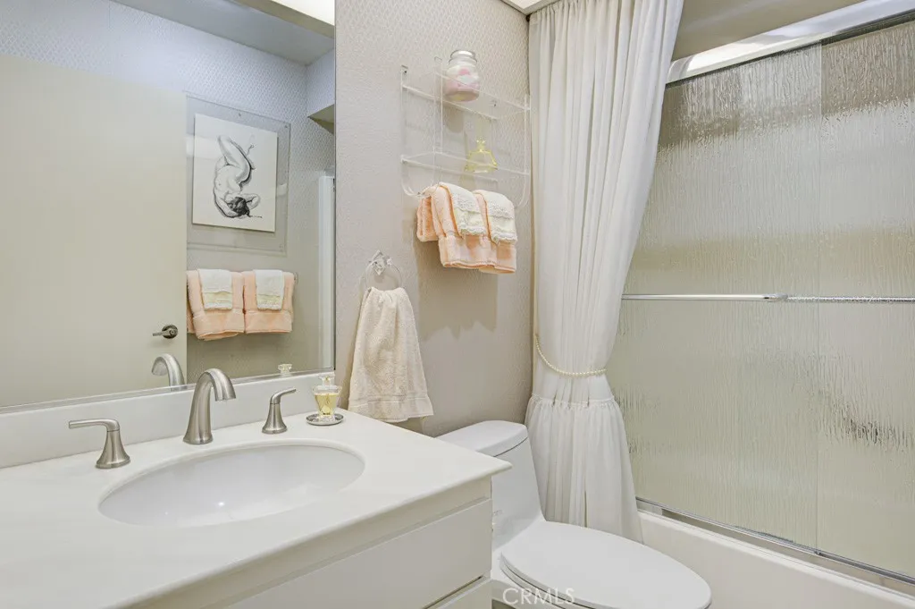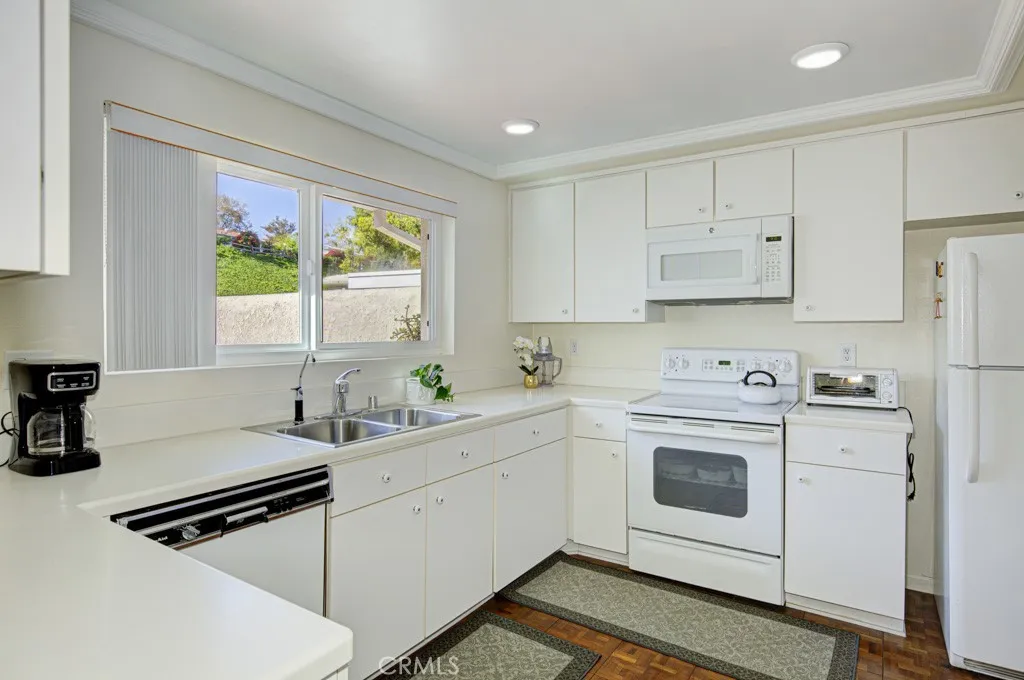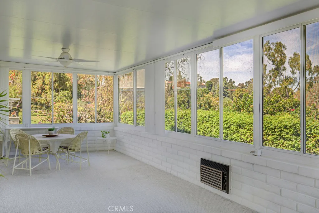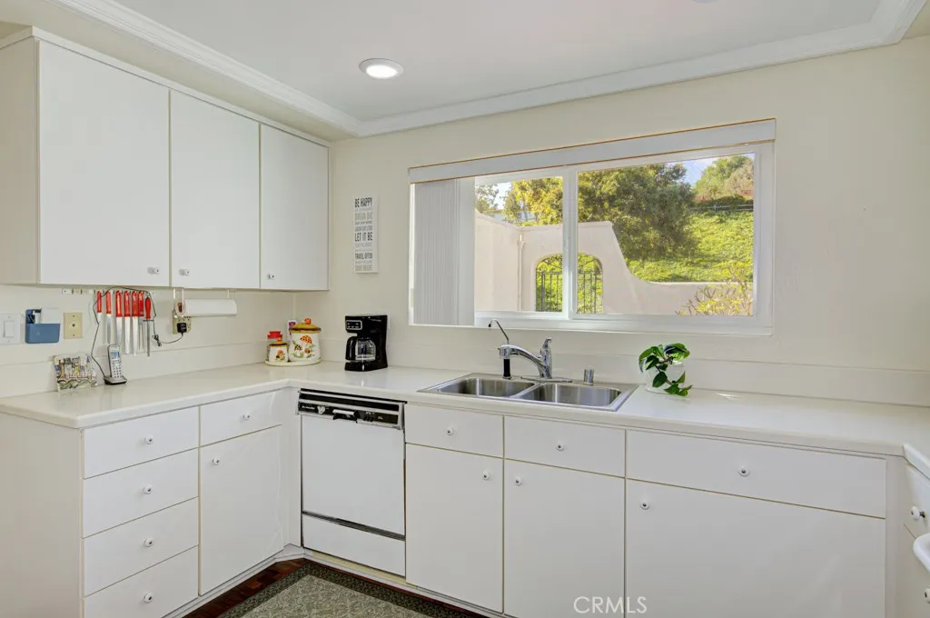 Welcome to 5479-A Paseo Del Lago – a three-bedroom, two-bath, single-level, end-unit CABRILLO residence in the Laguna Woods senior community. This property is situation near the end of a quiet cul-de-sac far from busy roads and noisy highways. The front courtyard has tile flooring and beautiful desert landscaping. The courtyard and adjacent covered side patio are the ideal location for outdoor entertaining, dining or relaxing. The huge living room has an added window to bring in additional daylight and easily accommodates large furnishings. The kitchen window looks out onto the front courtyard. The primary bedroom has an en suite bathroom with dual sinks and a shower. Either of the two guest bedrooms could serve as a home office, exercise area, sewing room or arts and crafts studio. The guest bathroom has a tub/shower combo. Dual-pane windows have been added throughout. The enormous enclosed rear patio which is accessible from both the living room and the primary bedroom offers a lovely panoramic view of the neighborhood and endless trees. The oversized two-car garage features epoxy flooring, washer/dryer hookups, utility sink and cabinet storage. The driveway easily accommodates two additional vehicles plus there is ample guest parking available in the cul-de-sac. This residence offers the perfect opportunity for a new owner to upgrade to their personal taste. Do not miss!