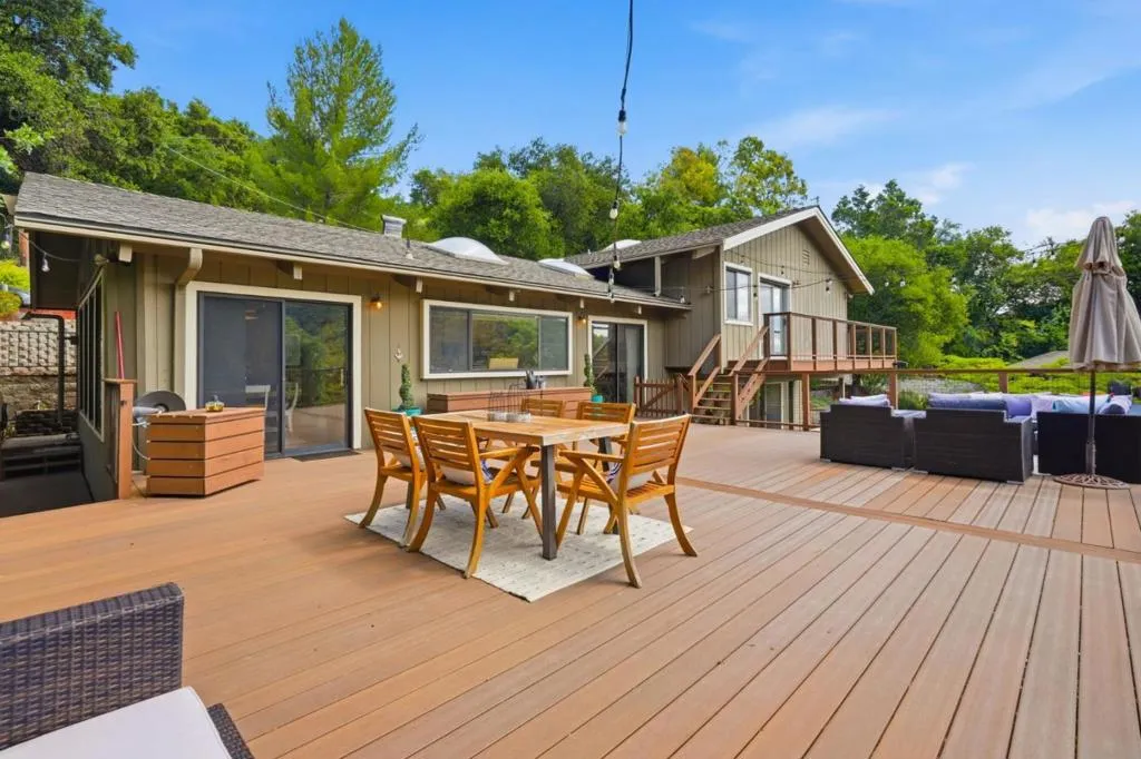 Tucked into a private canyon in the foothills of Morgan Hill, this beautifully upgraded home offers the perfect blend of space, privacy, and quintessential California indoor-outdoor living. Spanning 2,812 square feet of living space on an expansive 1.8-acre lot, the home features 5 bedrooms or a flexible 4-bedroom plus office layout, along with 3 full baths. Filled with natural light and framed by serene hillside views, every space feels like a tranquil escape. Thoughtfully designed for everyday living and effortless entertaining, the property features an upgraded view deck, owned solar, a full indoor-outdoor audio system and 2Gbit fiber optic internet service. Equipped with a pellet stove, a wood-burning fireplace, and dual HVAC/heat pump systems, the home offers cozy warmth in winter and comfort in the summer. The expansive grounds further elevate the experience, featuring beautifully landscaped terraces, full deer fencing, and a separate enclosed playground area, creating a rare and truly special retreat.