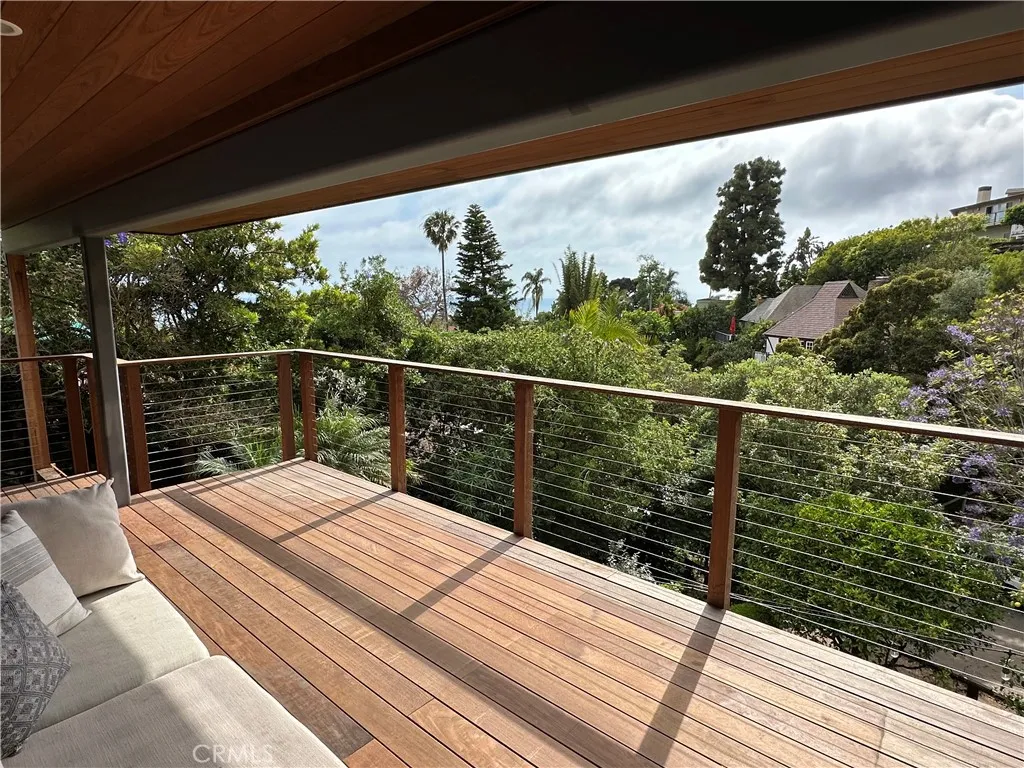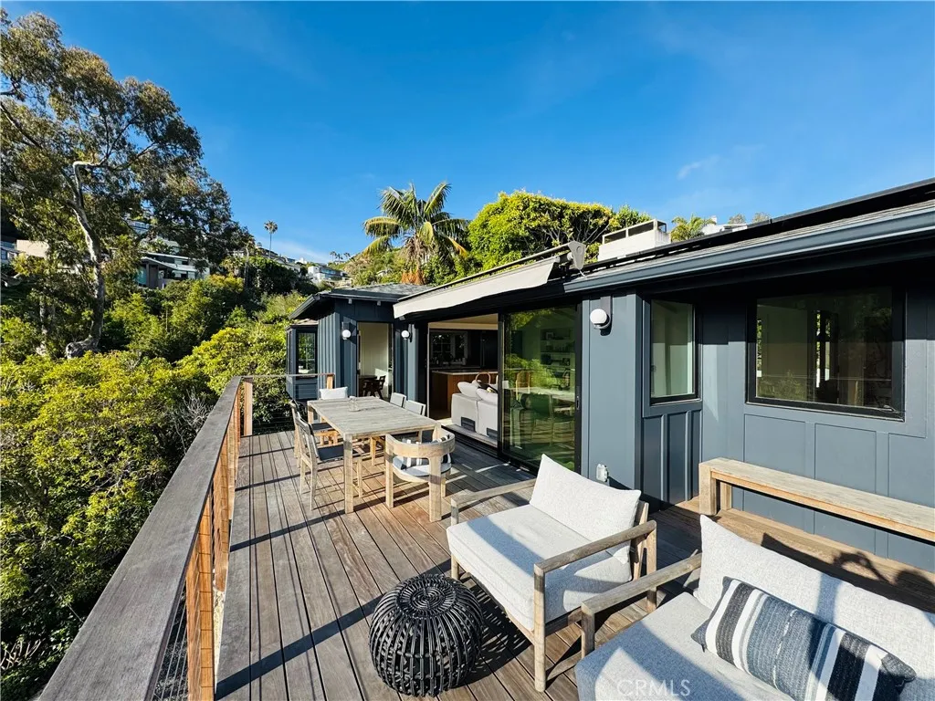 Enter through the gate into the inviting courtyard, and you will be captivated by this charming 1935 home, ideally situated on La Vista Drive in the Village of Laguna Beach. The open floor plan includes a cozy living room with fireplace, abundant natural light, and expansive upper and lower decks, creating a relaxing and peaceful retreat. Lovingly restored with exquisite attention to detail while retaining its original character, the home offers three bedrooms, three baths, and a spacious bonus room or office. The recently remodeled kitchen features high-end appliances and dining area surrounded by windows and ocean views. Gorgeous furnishings throughout the home from Restoration Hardware, Harbour Outdoor and Jayson Home & Garden. The beds include a king, queen, full, and a queen-sized pull-out couch in the bonus room. Additional features include an indoor laundry room, whole house water purifier, parking for two cars, an outdoor spa and shower, and fruit trees in the beautifully terraced backyard. Gardening, spa service and twice monthly cleaning service are included. Located just blocks from downtown and the beach, 843 La Vista is a magical home embodying the best of the Laguna Beach lifestyle. Available from September 1, 2026 - December 12, 2026, and again from January 9 - May 15, 2027.