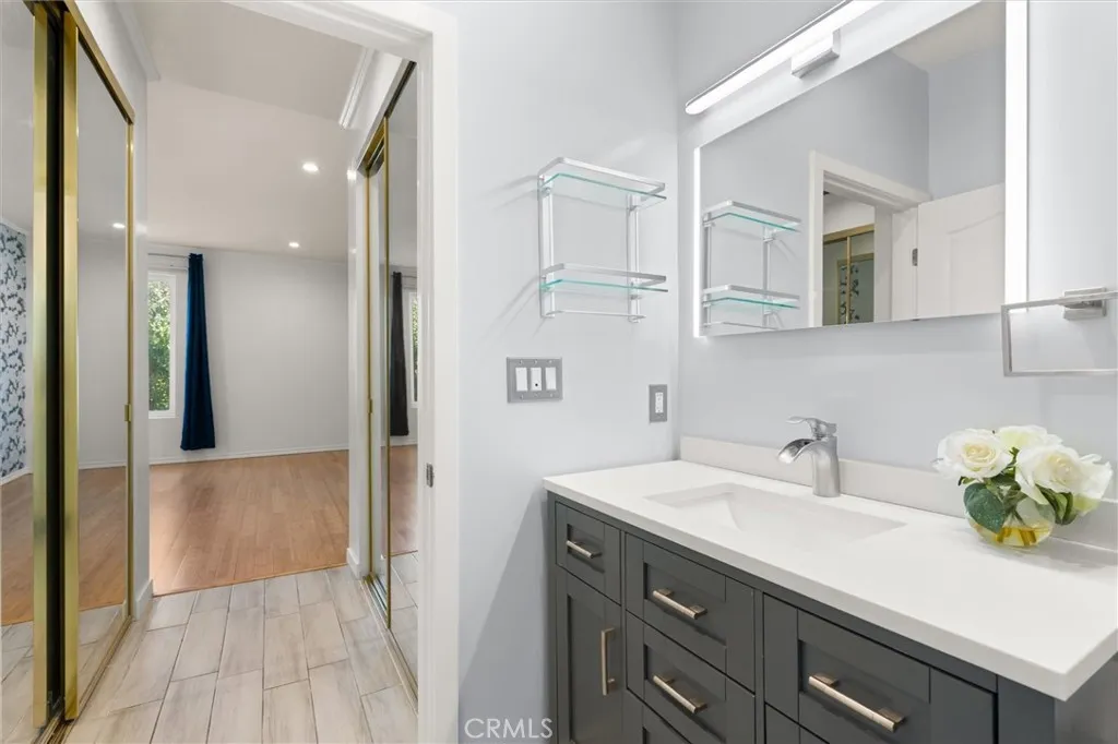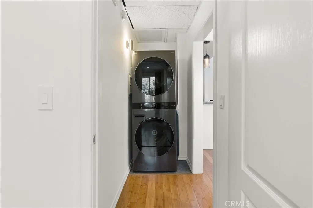 Experience the ultimate urban retreat in the heart of the NoHo Arts District! This tech-forward, freshly painted condo is a buyer’s dream, blending modern convenience with a prime walkable location. The "smart" interior features a Nest thermostat, Kasa dimmer switches, and a primary suite boasting a remodeled bath with an electric bidet and an anti-fog Bluetooth speaker mirror. The chef-ready kitchen is anchored by premium Bosch appliances and a brand-new refrigerator, while the laundry area features a sleek 2025 LG Wash Tower. Recent upgrades provide peace of mind, including energy-efficient double-pane windows and an A/C system replaced just 3 years ago. Located on the quiet backside of the building to ensure privacy and zero street noise, you can enjoy your morning coffee on the large, tree-lined private balcony or head to the rooftop deck for panoramic Valley views. Secure living with gated 2-car parking, perimeter security cameras, and extra shared storage. Live steps away from NoHo’s best coffee shops, bars, comedy clubs, and North Hollywood Park. Incredible commuter access to the 101, 134, and 170 freeways, plus proximity to major studios and Universal. Low-maintenance, high-tech, and perfectly situated—welcome home to Peach Grove!