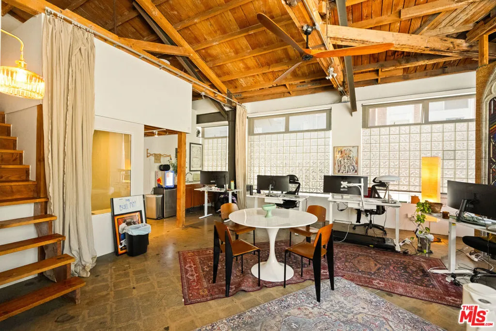 A rare opportunity to own a distinctive piece of Venice history, 120 Mildred is a 4,000-square-foot industrial architectural townhouse within the iconic Vanguard Lofts, originally part of the 1924 warehouse that housed the Venice Vanguard newspaper's printing press. Reimagined through a Danny Kaplan-designed renovation, the residence blends preserved warehouse character with modern live/work architecture, offering scale, volume, and exceptional flexibility in one of Venice's most unique compounds. Currently utilized as an office, the 3-bedroom, 3-bath layout includes an additional six private office spaces and approximately 2,500 square feet of ground-floor space with dramatic 17-foot ceilings. Designed to adapt to a wide range of uses, the property features large studio areas, mezzanine spaces, an open chef's kitchen, and seamless indoor-outdoor flow with private garden and deck spaces. Upstairs, flexible suites and expansive outdoor areas create endless possibilities for a creative office, live/work residence, or both. Exceptionally rare on its own, 120 Mildred also offers the unique opportunity to be combined with the adjacent 3,000-square-foot residence at 122 Mildred, creating a 7,000+ square-foot architectural compound just moments from the beach, Windward Circle, and Abbott Kinney.