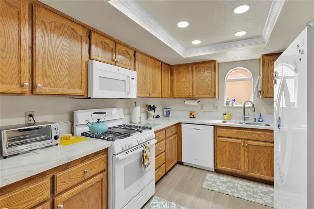 Welcome to your next chapter in the highly sought-after Jess Ranch gated community! This immaculate two bedroom, two bathroom gem is waiting for someone ready to enjoy the good life in Apple Valley's premier 55+ neighborhood. Step inside and you'll find a generous living room filled with natural light that flows right out to a serene covered patio. Those famous desert skies? Yeah, they're basically your new evening entertainment. The kitchen has been beautifully updated with brand new recessed lighting, sleek quartz countertops, and fresh laminate flooring. A five burner stove makes cooking feel like an event, and the convenient pass through bar to the dining room keeps you connected whether you're hosting friends or enjoying a quiet dinner. The primary bedroom is graciously sized with a lovely sitting area, wrap around dual sinks, and a tub shower combo. Even better, it has its own patio access for winding down after a long day of doing whatever you please. Extra storage cabinets throughout the home mean you'll never run out of room for your favorite things. Indoor laundry and a spacious two car garage round out the practical perks. Community living here is a treat with a clubhouse and pool right at your fingertips. You're also just minutes from the South Mojave Riverwalk, plus shopping and restaurants are conveniently close by. This bright and airy home is ready for its next happy owner. Schedule your private tour today and come see what easy living looks like!