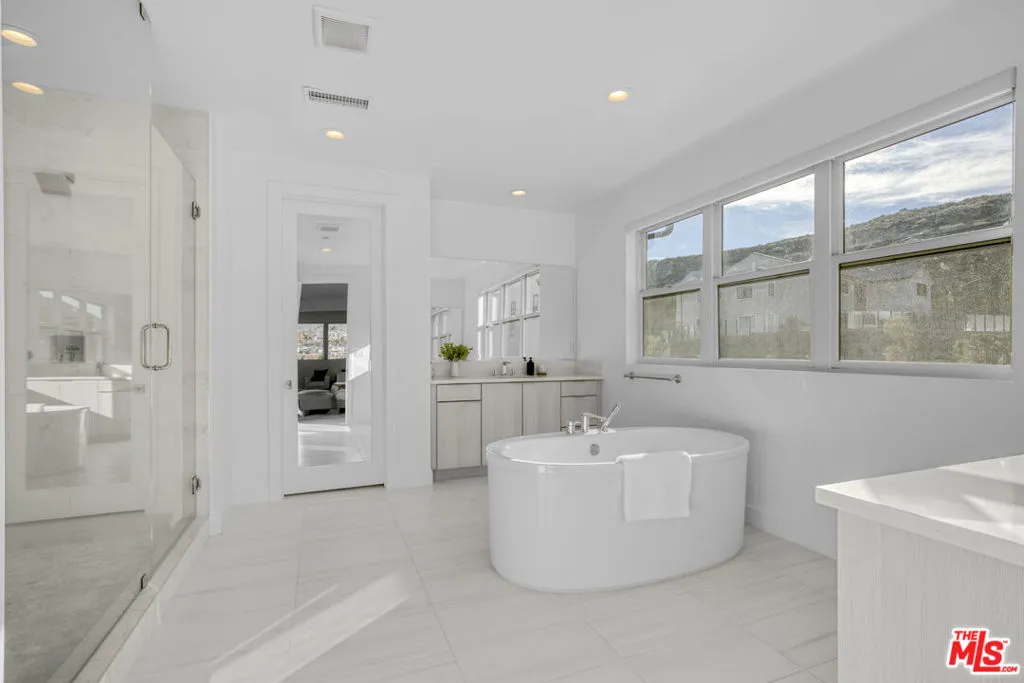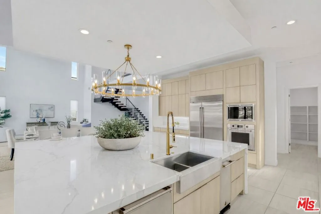LUXURIOUS RESORT-STYLE, NEWER-BUILT TOLL BROTHERS MODERN ESTATE. Welcome to 20115 Galway Lane, an ultra-luxurious, brand-new modern estate perched at the highest point in the prestigious Westcliffe 24-hour guard-gated community, offering breathtaking, unobstructed mountain views from sunrise to sunset. Situated on a massive 15,500 sqft lot and enhanced by over $1.1M in designer upgrades, this exceptional residence is truly in a class of its own. Step through the dramatic oversized glass pivot entry door with secured metal framing and be instantly captivated by soaring 24-foot ceilings and panoramic mountain views framed by floor-to-ceiling glass and expansive stacking doors that disappear into the walls, creating a seamless indoor-outdoor lifestyle.The open-concept gourmet kitchen is a chef's dream, showcasing Wolf and Sub-Zero appliances, a striking waterfall-edge quartz island, custom European-inspired cabinetry with under-cabinet lighting, a walk-in pantry, 6-burner gas range with griddle, and a stainless-steel farmhouse sink. Adjacent, the expansive great room impresses with two-story ceilings, oversized windows, and a sleek floating staircase that anchors the home's modern design.Upstairs, the primary suite is a true sanctuary, offering sweeping mountain views, a spacious sitting retreat, and a spa-inspired bathroom with a soaking tub, dual vanities with custom stone countertops, and a luxurious rainfall shower. Three additional upstairs bedrooms each feature private en-suite bathrooms, while the main level includes a generously sized multigenerational en-suite bedroom and a versatile bonus room ideal for an office, extended home gym, or playroom.PRIVATE BACKYARD OASIS LARGEST LOT IN THE COMMUNITY. Step outside to the covered California Room and enjoy sweeping mountain views beneath vast open skies. The extraordinary, ultra-wide backyard offers true resort-level scalecapable of hosting 300+ guests with ease. Pool plans are already fully permitted and HOA approved, allowing construction to begin immediately. Professionally designed by a renowned contemporary architect, the approved vision includes a 34-foot modern pool with Baja shelf, integrated spa, dramatic floating steps, sunken fire-pit lounge, and water features all perfectly positioned against a breathtaking mountain backdrop. The expansive yard also accommodates generous green space, a custom golf putting area, sports court, outdoor kitchen, playground, or a fully customized luxury retreat. Skip the stress and enjoy the rare opportunity to bring your dream backyard to life without delay.Additional highlights include fully paid solar, a two-car garage, upstairs laundry room, sleek front floating steps, stylish secured side gates, and outstanding curb appeal.Enjoy walking-distance access to a brand-new 50-acre community park featuring tennis courts, pickleball, basketball, hiking trails, an amphitheater, splash pad, and more. Zoned for top-rated schools, including Sierra Canyon and Porter Ranch Community School, and conveniently located near premier shopping, dining, golf courses, and hospitals.This is a rare, turnkey opportunity to own a statement property with unmatched views, scale, and luxury ready for immediate backyard construction and effortless resort-style living. Schedule your private showing today, this extraordinary estate is truly one of a kind and won't last!
