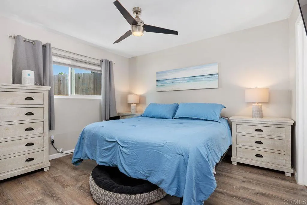 Welcome to this beautifully updated single-story home, offering the perfect blend of style, comfort, and value for today’s buyer. Thoughtfully upgraded throughout, the home features wood-look laminate flooring, quartz countertops, and a modern kitchen with new cabinetry, stainless steel appliances, and updated fixtures. Enjoy bright, open living spaces filled with natural light, enhanced by new dual-pane windows for added efficiency and comfort. The bathrooms are tastefully finished with tile details, while newer carpet in the bedrooms creates a cozy and inviting retreat. There are ceiling fans and mirrored closet doors in all bedrooms and a ceiling fan in the living room. Situated on an expansive approximately 10,000 sq ft lot, the property offers a fully fenced yard with mostly durable vinyl fencing—ideal for outdoor entertaining, pets, or future possibilities like a garden or ADU. Ideally located near shopping, dining, and schools, and just a short drive to the beach, this home delivers both convenience and lifestyle. With no HOA and no Mello-Roos, it offers an incredible opportunity to own a move-in ready home with long-term value.