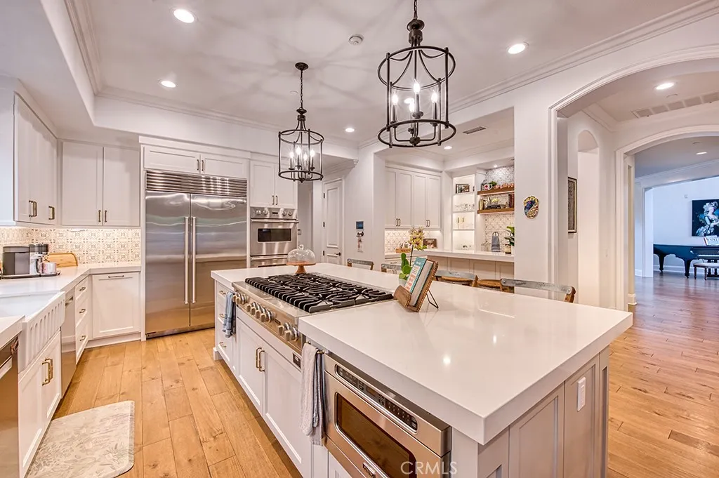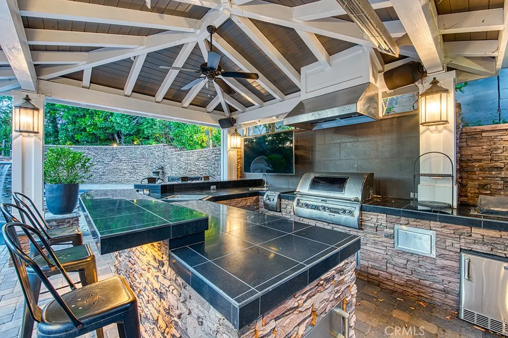 Welcome to 22 Hawthorne, an exceptional and rarely offered corner-lot residence tucked within the coveted Private Collection of South Coto de Caza—where elevated living meets everyday comfort on a premier 12,000 + sq. ft. lot. Showcasing a seamless blend of modern upgrades, expansive living spaces, and resort-inspired amenities, this home delivers a truly distinctive lifestyle in one of the community’s most desirable enclaves. This expansive residence offers 6 bedrooms, a dedicated office, a spacious bonus room, and 6.5 bathrooms, including a detached private casita with a kitchenette and en-suite—perfect for guests, multigenerational living, or a private retreat. A main-level bedroom with its own full bath and separate front access adds flexibility and convenience. A dramatic entry sets the tone with soaring ceilings and two-story windows that flood the formal living room with natural light. Coffered ceilings and a beautiful fireplace define the private downstairs office, while the formal dining room sits ideally near the heart of the home. The remodeled gourmet kitchen is a true showpiece, featuring high-end stainless steel appliances, a large center island, walk-in pantry, and a custom bar area complete with a wine refrigerator—designed for both everyday living and effortless entertaining. The kitchen opens seamlessly to the inviting family room, highlighted by coffered ceilings, a fireplace, and views of the beautiful backyard. Step outside to your own private oasis—surrounded by mature landscaping for ultimate privacy. The resort-style yard features a sparkling pool and spa, dramatic fire feature, and two outdoor living spaces that include a BBQ center and fireplace, creating the perfect indoor-outdoor lifestyle year-round. Upstairs, the luxurious primary suite offers a tranquil retreat with its own fireplace, a spa-inspired bathroom, expansive walk-in closet, and a versatile adjoining flex room overlooking the living space below—ideal for a gym, nursery, or lounge. Additional upstairs highlights include a generous bonus room, two secondary bedrooms with en-suite baths and walk-in closets, plus another bedroom with a nearby full bath. Additional upgrades include owned solar, four Powerwalls, whole house speaker system, and a newer HVAC system. Experience the best of Coto de Caza, where premier living meets award-winning schools, a world-class Golf & Racquet Club, scenic sports parks, and easy access to hiking, biking, and equestrian trails.