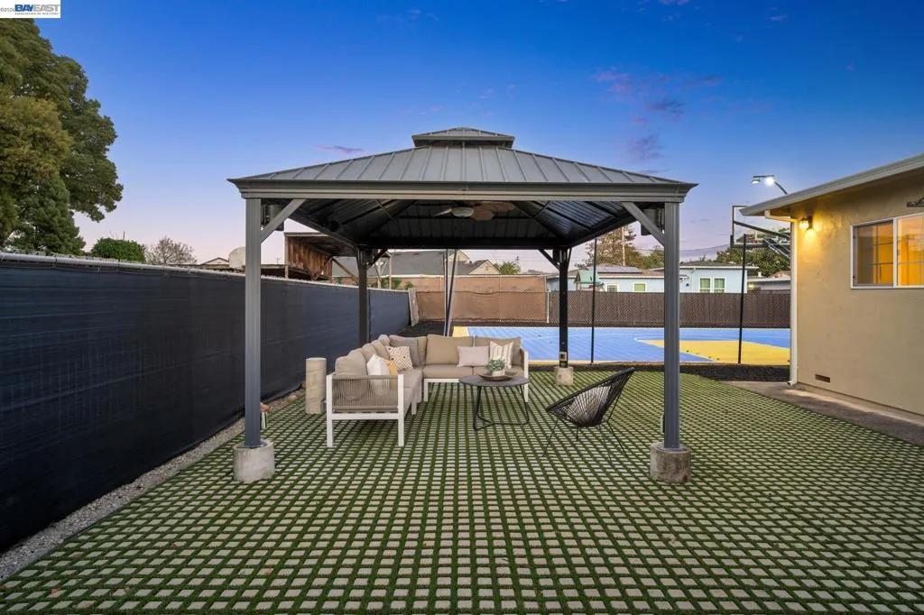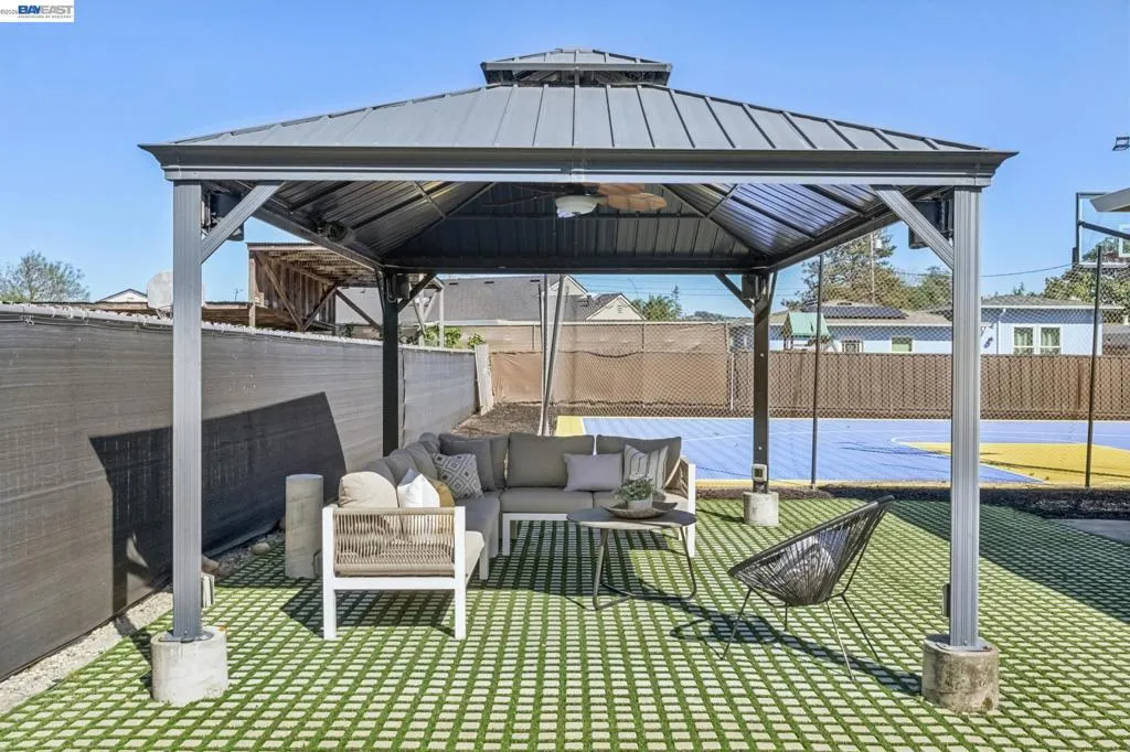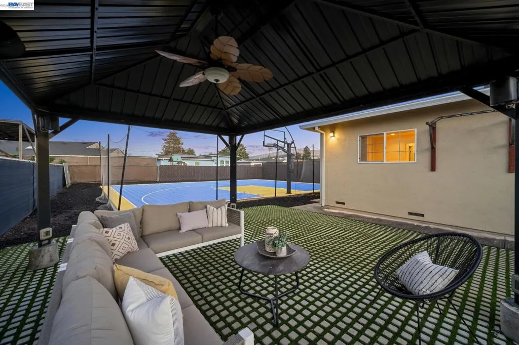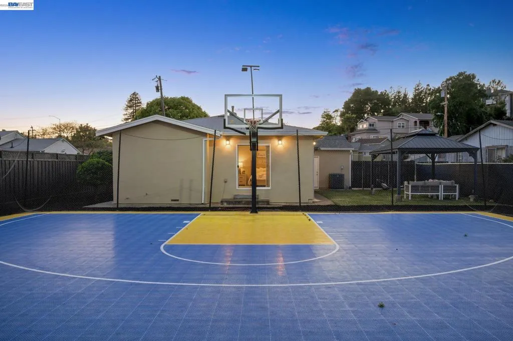 You’re going to love this adorable, remodeled and updated single level Castro Valley home on a fabulous court location that's sure to impress even the most discerning of buyers. This fabulous 4 bedroom, 3 full bathroom abode has been reimagined for today’s living with a stunning open concept floor plan that incorporates the living room, dining area and remodeled kitchen with stainless steel appliances, granite countertops, gas oven/stove, and plenty of cabinet and counter space for storage and preparing. The primary en-suite bedroom has a large private bathroom with dual sinks, walk-in closet, and direct access to the outdoor space. Other features include air conditioning, double paned windows throughout recessed lighting, contemporary matching flooring in the bedrooms, bathrooms, and communal areas, a laundry closet with washer and dryer included, and a media center for CAT 5 and surround sound. All this on a premium level lot of over 10,000 square feet with attached garage and room enough for multiple vehicles and possible RV, and that doesn’t include the amazing fully fenced outdoor space that’s ideal for entertaining with family and friends under the pergola with fan and power, or shooting some hoops on the amazing Golden State Warriors inspired basketball court with professional hoop and lighting. All this and more with Castro Valley Schools, and close proximity to shoppihg, transportation, and recreation.