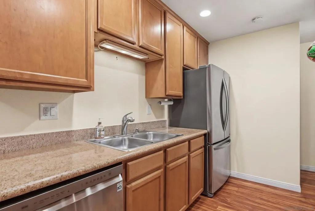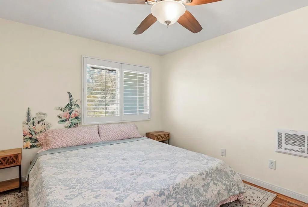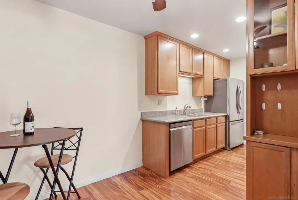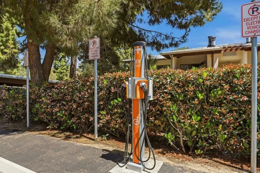 This top-floor corner unit in the resort-style Pacific Pines community offers a private balcony with storage and a highly functional layout. The interior features 1 bedroom with spacious walk-in closet, a walk-in shower, stainless steel appliances in kitchen, plantation shutters on all windows, a cozy fireplace, and the significant convenience of in-unit laundry located right in the closet. Residents benefit from a dedicated covered carport space and an HOA fee that includes water service, making for a simplified and comfortable living experience. The community provides an active lifestyle with access to a clubhouse, gym, pool, spa, and tennis courts. Practical additions like EV charging stations and a fob entry system enhance the property's utility. Situated in a prime Encinitas location, this condo is a great find for those seeking a well-maintained home with extensive amenities in a peaceful coastal environment.
