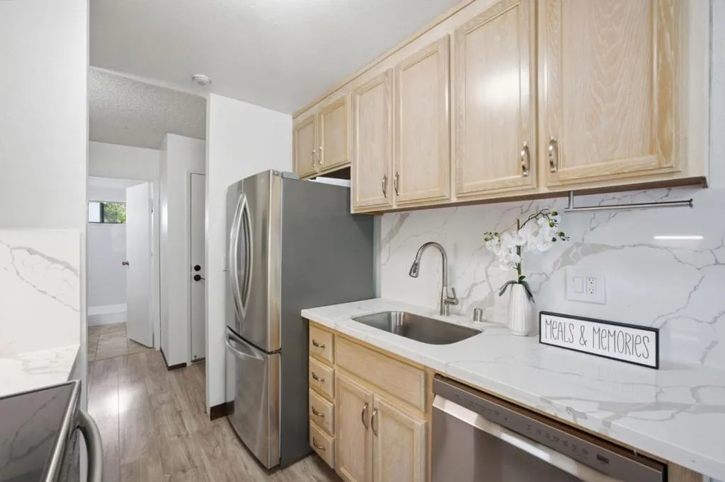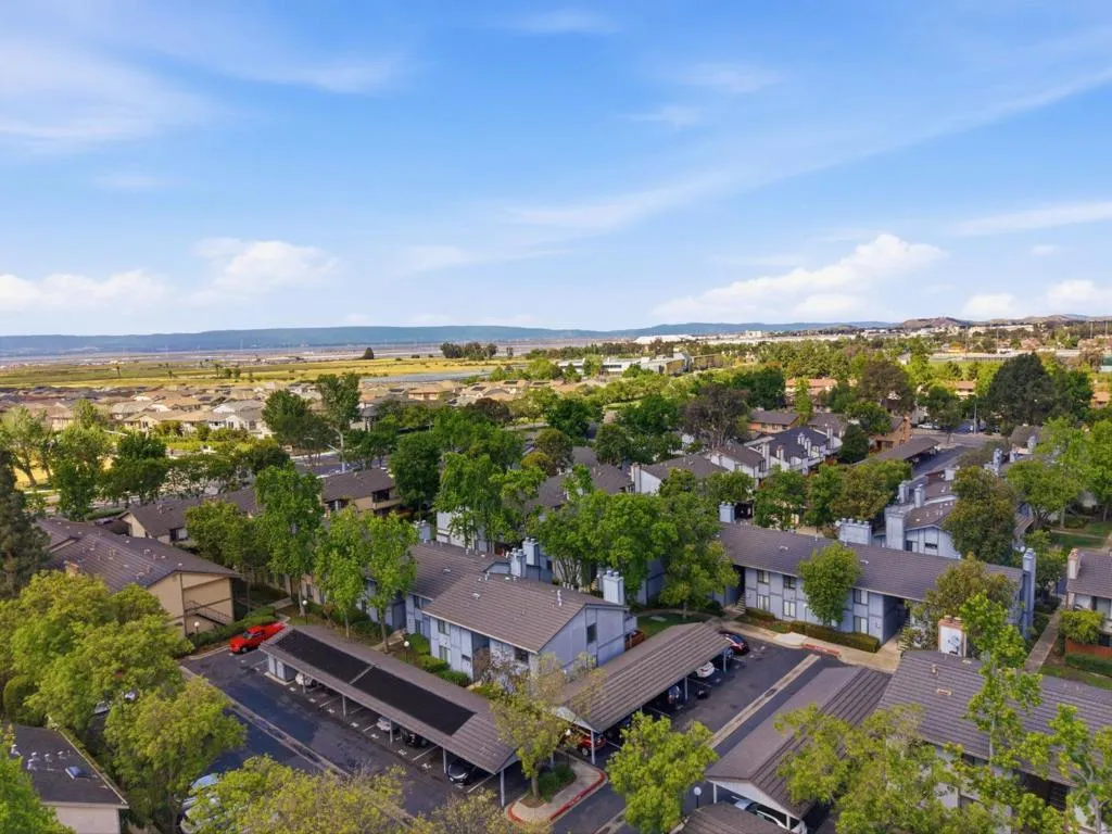Enjoy comfortable top-floor living in this end-unit condo located in the desirable Newpark Village community. With no neighbors above and additional windows from its end-unit position, the home offers great natural light and an open feel, highlighted by vaulted ceilings. The interior has been has been thoughtfully refreshed, updated cabinetry, and an upgraded bathroom. The spacious bedroom includes a walk-in closet, and the private balcony with a storage closet adds functional outdoor space. An in-unit washer and dryer provide everyday convenience. HOA covers water and trash.Live like youre on vacation with access to community amenities including pools, spas, tennis courts, a clubhouse, and fitness center. This community makes it easy to enjoy your downtime without ever leaving home. Conveniently located for commuters with easy access to I-880, the Dumbarton Bridge, BART, and nearby tech shuttle stops. Close to Newpark Mall, Pacific Commons, Costco, Ohlone College, and local parks and trails. This move-in-ready home combines modern interior upgrades with an unbeatable location and a full suite of resort-style amenities. Whether you are a first-time buyer or looking for a low-maintenance investment, this quiet top-floor retreat is a must-see.