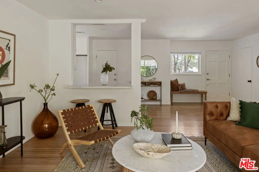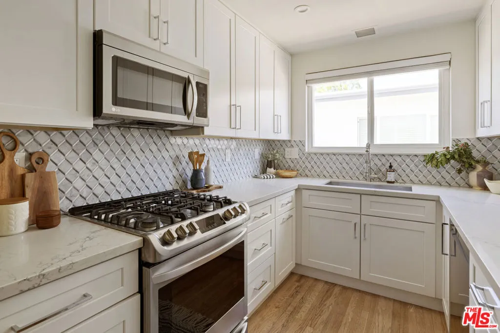 Located in the sought-after Encino Village neighborhood, this stunning three-bedroom, two-bathroom home greets you with a freshly painted exterior and beautifully kept landscaping. The main living space showcases wood floors and a decorative fireplace. An abundance of natural light and views of the backyard make this a place you'll love coming home to. The bright kitchen features quartz countertops, stainless steel appliances, and an oversized peninsula with a breakfast bar. Just off the living room, the cozy and elegant dining area is the perfect place to entertain. The primary bedroom offers two closets and an en suite bathroom with dual sinks. On the opposite side of the home, two additional bedrooms share a well-appointed hall bathroom. Outside, the backyard immediately draws you in with ivy-draped walls, a large covered patio, and plenty of lush green space. The attached two-car garage houses the washer, dryer, and a newly installed tankless water heater. Newer solar, updated plumbing, ample storage, and a freshly painted interior and exterior make this the most effortless choice. The location truly is a dream, with tree-lined streets and easy access to Balboa Park, the Balboa Sports Complex, Ventura Blvd, fantastic restaurants, major freeways, and within the Encino Charter Elementary School District. This home is a true hidden gem in the heart of the Valley.