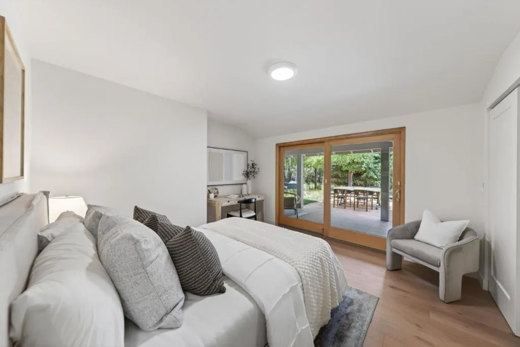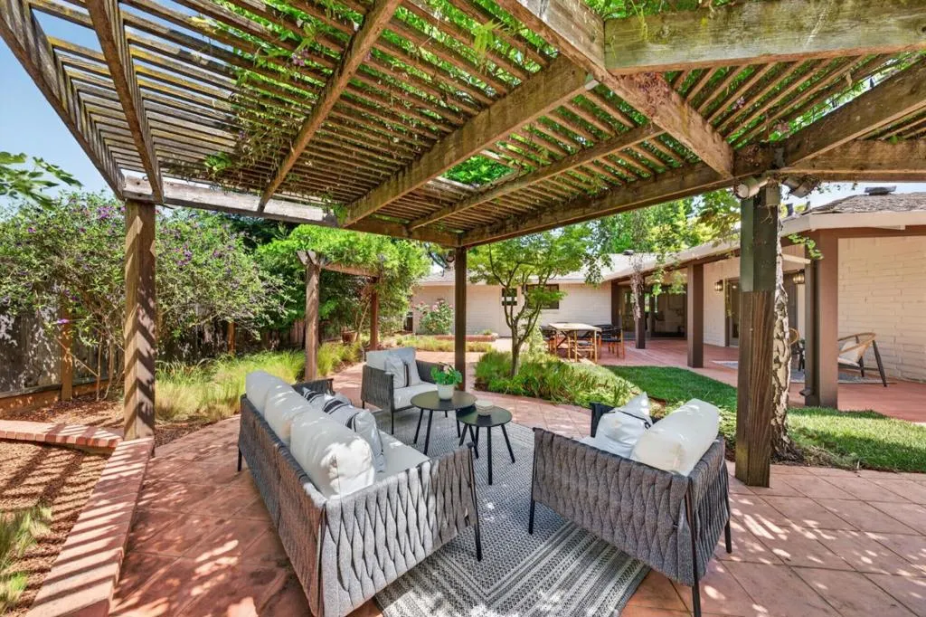 Discover the pinnacle of Mountain View living in this stunning 4-bedroom, 2.5-bathroom sanctuary, perfectly positioned on a quiet interior loop in the heart of Waverly Park. This spacious residence seamlessly blends architectural character with modern luxury, featuring brand-new wide-plank flooring and an abundance of natural light throughout. Both the formal living and family rooms serve as showstopping retreats, defined by soaring vaulted ceilings and open beams. The gourmet kitchen is a chefs delight, complete with shaker cabinetry and sun-drenched workspaces. The primary suite is a true retreat, offering a large bathroom w/ double vanity and convenient walk-in closet. Each of the 3 additional bedrooms are generously sized, providing ample space for family, guests, or a home office. Outside, the backyard is an entertainers paradise; enjoy year-round al fresco dining under the covered patio, surrounded by lush mature landscaping, privacy-enhancing greenery, and thriving fruit trees. Located just a short stroll from top-rated Mountain View High, you are steps away from the Stevens Creek walking trails and equidistant to both Downtown Los Altos and Downtown Mountain View. Seamless commute to tech hubs like Google, Meta, and Apple.