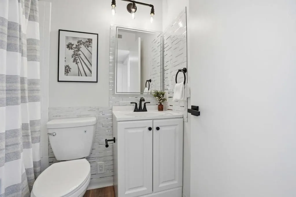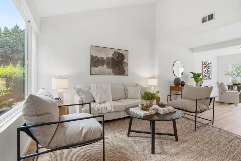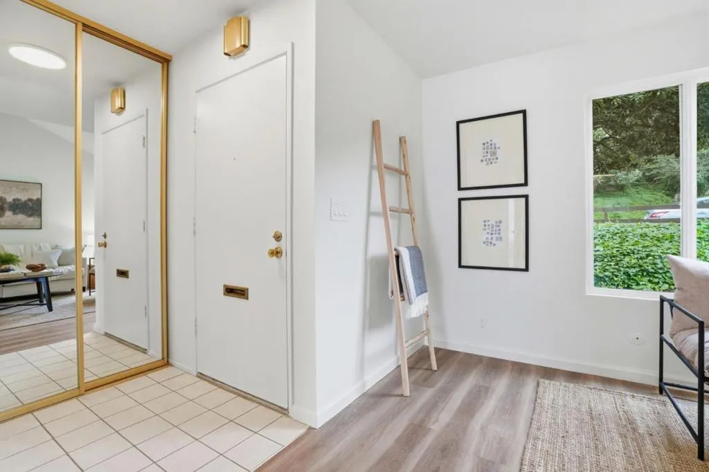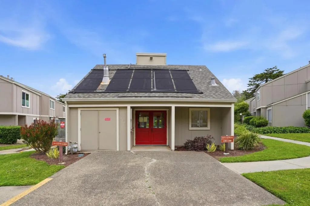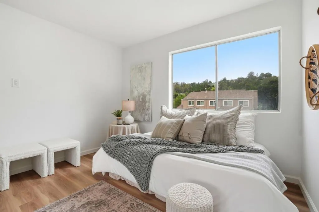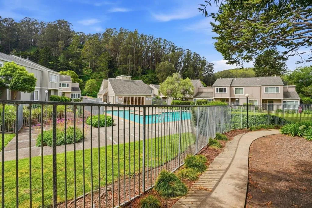 This 2-bedroom, 1.5-baths home is located in Pacifica and offers approximately 1,150 square feet of living space. The kitchen features new quartz countertops, an electric oven range, a dishwasher, garbage disposal, hood over range, and a refrigerator, providing a functional cooking area. Flooring throughout includes carpet and laminate, complemented by double pane windows for added energy efficiency. The bathroom includes a tile shower over tub and a half bath on the ground floor. Heating is provided by central forced air gas, and there is no cooling system. Dining options include a breakfast bar and a dining area. Laundry is conveniently located in the utility room with washer and dryer and loads of storage. The property is part of the Pacifica elementary school district. While there is no garage or family room, the home benefits from high ceilings and access to community pool facilities. Minutes to shops, ocean, beach and San Pedro Park.