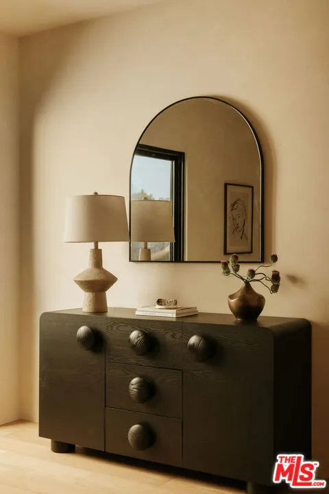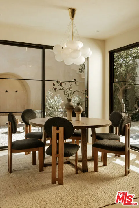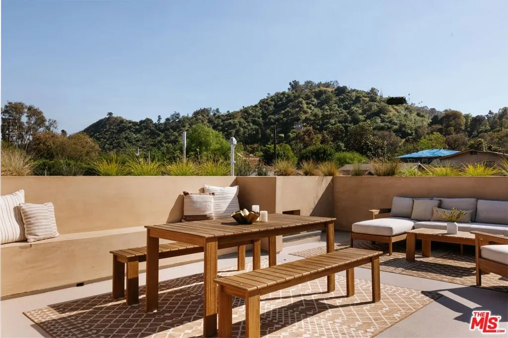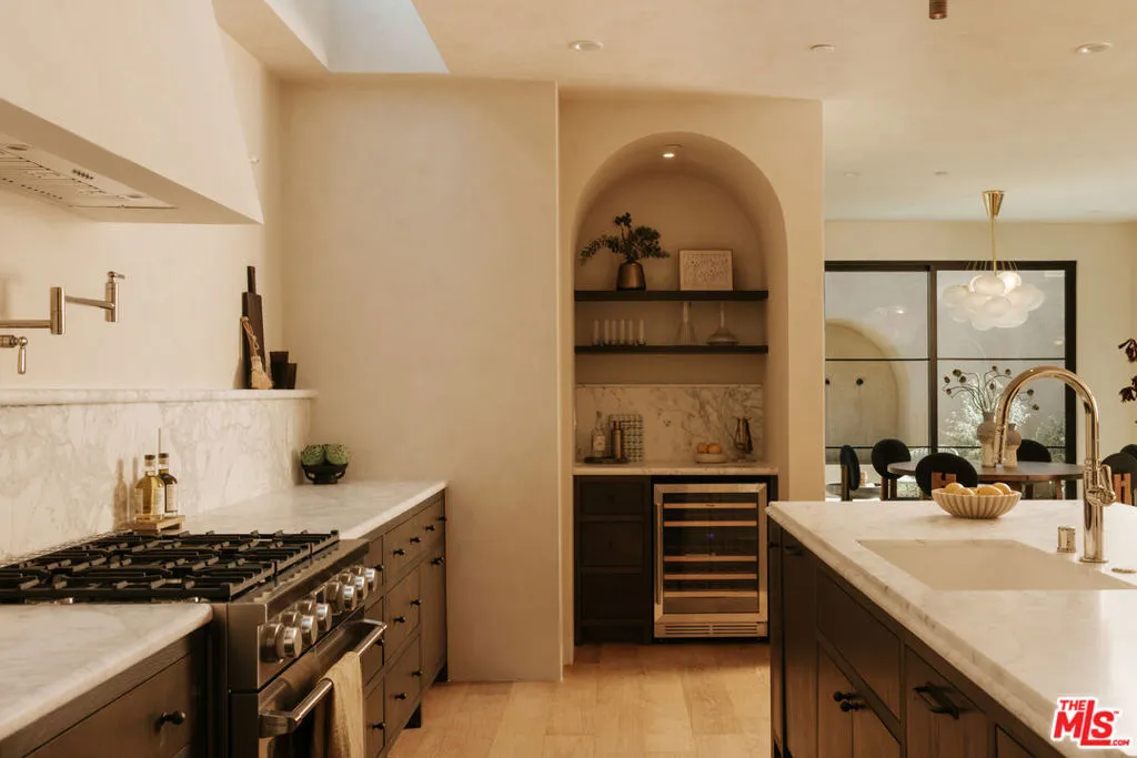 Newly rebuilt and reimagined by renowned local design/build company Nubis Development, this striking Frogtown compound includes a 3 bed, 2.5 bath main residence spanning 2,205 sq ft and a rear 1 bed, 1 bath ADU totaling 565 sq ft. Thoughtfully built with exquisite, romantic design, the property delivers a seamless blend of functionality, indoor-outdoor living, and serene sophistication in one of Los Angeles' most vibrant neighborhoods. Positioned on a prominent corner lot, the home makes a striking first impression with its bold, modern facade - wrapped in stone cladding and a moody charcoal exterior. Tall privacy hedging and curated plantings frame a gated entry path leading to the front door, offering a subtle, private approach to the light-filled home. The entry opens into a dramatic living space centered around a fireplace, while expansive Milgard sliding doors create an effortless connection to the surrounding patios and yard. An intriguing powder room features Roman clay walls and a custom marble sink. The kitchen serves as the focal point, anchored by a generous center island with honed Carrara marble countertops and bar seating. Custom cabinetry provides abundant storage, while skylights above the six-burner range bathe the space in natural light. A chef's dream, additional amenities include a paneled dishwasher, a full suite of THOR appliances, and a tucked-away pantry with a built-in microwave. An arched bar area with a wine refrigerator adds an elevated touch. At the far corner, the dining room is wrapped in floor-to-ceiling Milgard sliding doors on three sides, creating a bright and tranquil setting for dining. A sculptural staircase leads to the second level, where all three bedrooms are thoughtfully arranged along a striking curved hallway. At the end of the hall, the primary suite serves as a true retreat, featuring decorative molding along the bedside wall with sconces flanking the bed, a spacious walk-in closet, and a private balcony with integrated planters. The ensuite bathroom evokes a spa-like experience, complete with a freestanding soaking tub, Sacal flagstone floor tiles, an oversized shower with grid-style glass and dual rain shower heads, and a vanity with dual sinks and Crema Lisboa limestone countertops. Two additional bedrooms share a beautifully appointed hall bathroom with natural stone flooring, while a dedicated laundry room adds everyday ease. Crowning the main residence, a rooftop deck offers a showstopping space for entertaining, complete with a built-in BBQ, sink, refrigerator, bar-top seating, planter boxes, and ambient lighting - all accessed by a spiral staircase and designed to capture sweeping views. At the rear of the property, the newly constructed ADU mirrors the main home's thoughtful design and material palette. The open-concept living space features limewash walls and a full kitchen skylit with custom cabinetry and stainless steel LG appliances. A serene bedroom, well-appointed bathroom, and in-unit laundry make it a fully self-sufficient space, while its own rooftop deck provides an additional private outdoor escape, highlighted by a sculptural, geometric staircase that adds a remarkable architectural moment to the exterior. The outdoor spaces are thoughtfully designed, offering a series of distinct yet connected areas for lounging, dining, and entertaining. The backyard is finished with a custom fountain, fire pit, textured stonework, and patios off the living room and dining room, all brought together by lush, curated plantings from Natalie Chandler Design that enhance both privacy and visual depth. This exceptional property is surrounded by beloved local favorites, including the LA River bike path, Wax Paper, Lingua Franca, Loreto, Salazar, and Spoke Bicycle Caf. With its design-forward aesthetic and versatile layout, this compound offers a rare opportunity to experience elevated living in one of LA's most creative communities.