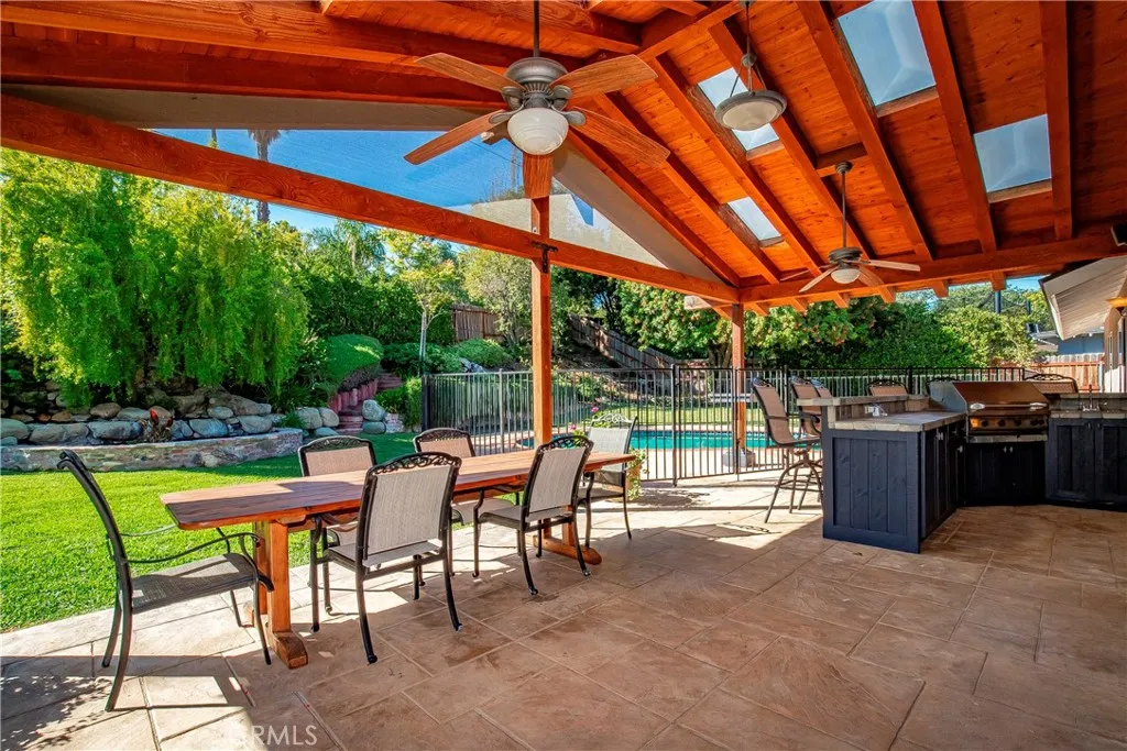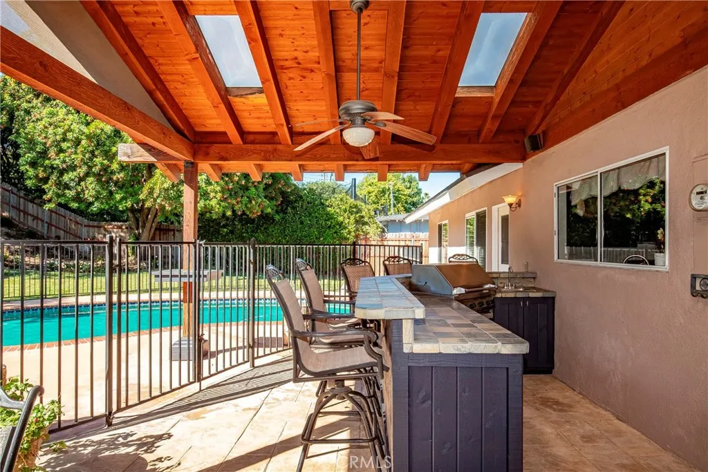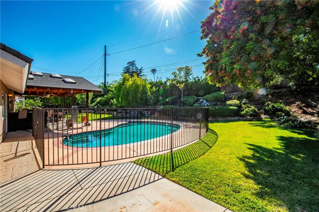 Mid-century modern meets upgraded elegance! This one checks all the boxes! Elevated above street level for added privacy, with 5 large bedrooms, and 4 full bathrooms, plus an office, formal dining room (or family room), & separate downstairs laundry room, you can enjoy the space you need for a growing family! There are 2 large bedrooms upstairs with a full bathroom, and 3 large bedrooms downstairs (2 masters!) with 3 full bathrooms. Many quality upgrades & additions have graced this fabulous home since the current owners first moved here over 30 years ago! The chef’s kitchen has been recently renovated with gorgeous Quartz countertops, stunning flooring, new cabinets with self-closing feature, & new farm-style sink. The kitchen opens up to the formal dining room (or family room), with a sliding glass door to your stellar back yard featuring a fully fenced in-ground Gunite pool, lush landscaping, beautiful koi pond with water feature, and plenty of mature trees including a large Pepper tree with colorful foliage. Enjoy the best of outdoor entertaining with your own huge covered built-in barbeque with bar stool seating & ceiling fans. The covered and private home entryway opens up to your cozy living room with huge bay window & bench seating, plus a functional fireplace to warm those chilling nights. The hallway to the left brings you to a full bathroom with tub & shower, and then the main master suite, which features 2 large closets (one walk-in), large bay window, and attached remodeled bathroom complete with a stunning walk-in shower & dual vanities. The second downstairs master bedroom features a large window, and an attached bright full bathroom. The attached garage, functional & convenient, with workshop area & complimentary freezer and opens up to the laundry room and extra fridge. A stand-out feature is the large RV parking behind the driveway gate, and there is a large storage room, plus outside sheds on a concrete slab. The neighborhood is eligible for excellent local schools within the Conejo Valley Unified District, including the highly coveted M.A.T.E.S. Charter School, plus Westlake High School. The Canejo Creek North Library & Community Park is within walking distance, with a public entrance gate located right on Fremont Drive! Other local shops & venues minutes from your home include the Civic Arts Plaza, shopping malls, Large Home Goods & Whole Foods, & Los Robles Hospital. Great street for kids at play, triple dead end & no through traffic!