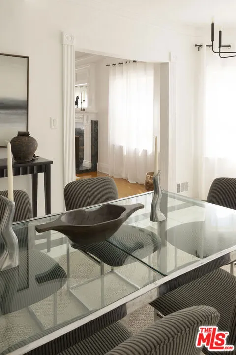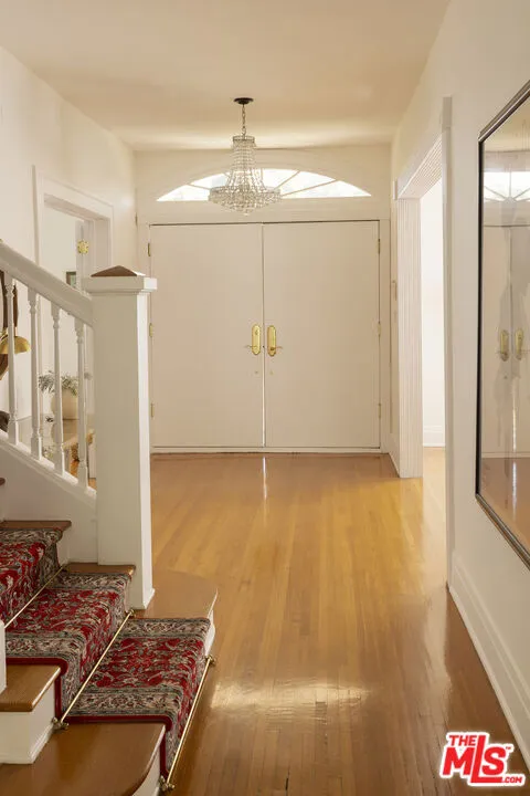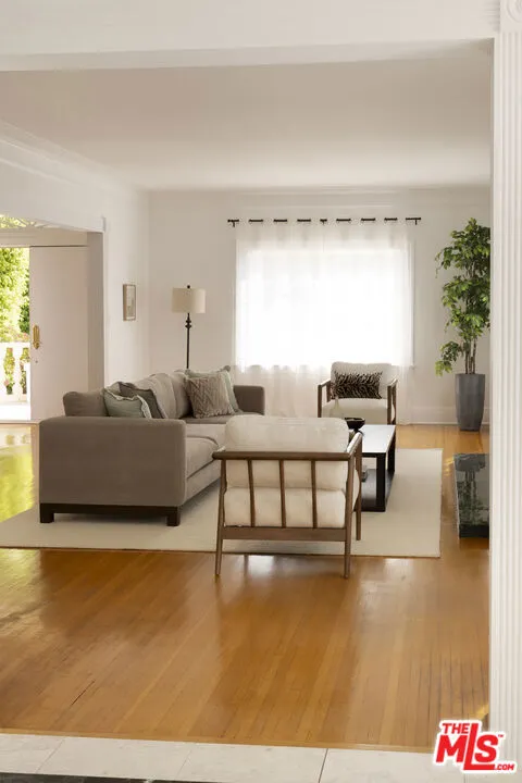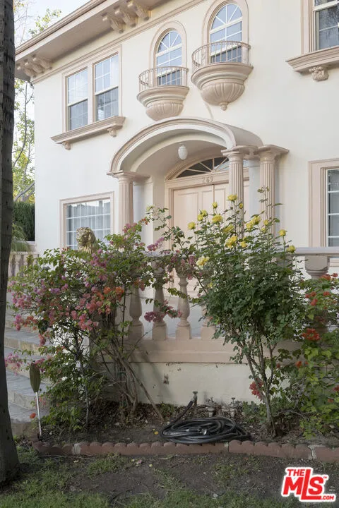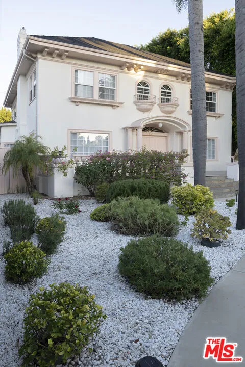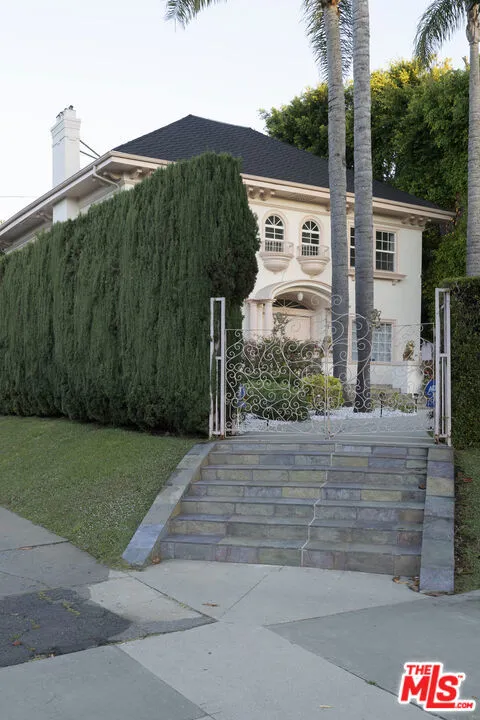 Commanding a premier corner presence in the heart of Windsor Square, this distinguished 1919 Colonial estate is a rare offering, gracefully held and meticulously cared for by the same family for nearly three decades. Rich in heritage and architectural integrity, the residence unfolds across a grand yet balanced floor plan, offering 4 bedrooms and 3 1/4 baths infused with timeless sophistication, with subtle Art Deco influences and a sense of effortless flow throughout. A stately double-door entry introduces a dramatic foyer, setting the tone for interiors defined by scale, light, and enduring elegance. A formal parlor with French doors and an expansive living room anchored by a classic fireplace create a seamless interplay between refined entertaining and relaxed living. Lustrous hardwood floors and a sweeping central hall guide you to a striking dining room designed for memorable gatherings, effortlessly extending to the outdoors. Beyond, a secluded, fully gated garden sanctuary evokes a private, resort-like atmosphere complete with a pergola, spa, curated drought-tolerant landscaping, and multiple areas for elevated al fresco dining in the glorious Southern California climate. The kitchen and adjoining laundry are thoughtfully positioned just off the dining room, while a versatile main-level bedroom, currently styled as an office, offers flexibility for guests or work-from-home living. A well-appointed guest bathroom completes the main level. Ascend a gracious staircase to the second level, where three spacious bedrooms await. The luminous primary suite serves as a true retreat, featuring an en suite bath with soaking tub, ample closet space, and two additional nooks ideal for a nursery, yoga room, or private office. One of the secondary bedrooms boasts a charming, enclosed sun porch, adding warmth and character. A refined guest bathroom completes the upper level. A detached two-car garage with impressive ceiling height offers a rare bonus: a substantial upper-level space ideal for a studio, creative workspace, or potential ADU conversion (buyer to verify). Enhancements include a newer roof, central HVAC, retrofitted foundation, partial sewer line replacement, upgraded copper plumbing, and a 200-amp electrical panel, blending classic architecture with modern infrastructure. Privately hedged and gated, and moments from Larchmont Village and the prestigious enclaves of Hancock Park, this exceptional residence is also ideally positioned near some of the area's most highly regarded schools, further enhancing its appeal. This exceptional residence represents a rare opportunity to own a legacy property in one of Los Angeles' most storied neighborhoods - one that truly must be experienced in person to appreciate its energy and flow.