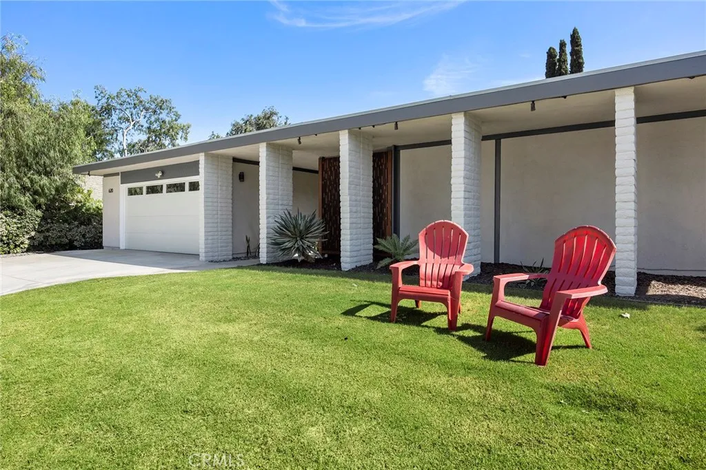 Stylish, striking and exuding an understated cool vibe, this stunning mid-century modern residence is sure to impress, welcome to 620 E. Glenwood Avenue. Tucked into a quiet, tree lined cul-de-sac; crisp, sharp architectural details are complimented by a lush, tropical landscaped entryway. Double doors lead into a spacious, meticulous and FRESHLY PAINTED interior with wood flooring throughout the living areas and main hallway. The striking fireplace is balanced by two large windows overlooking the manicured backyard, the spacious living room flows perfectly into the formal dining room with stylish chandelier and a sliding door to the backyard and patio. A remodeled and perfectly appointed kitchen features quartz counters with a contrasting wood breakfast bar, a full suite of KitchenAid SS appliances including a 5-burner gas cooktop, side-by-side fridge and quality shaker white cabinetry. A breakfast nook, ½ guest bathroom and direct garage access complete this side of the home. Down the light filled hallway with skylight, double doors lead into a surprisingly spacious primary suite with dual closets, one a walk in, and a sliding door to the backyard. The en-suite has been remodeled with a perfect mid-century modern style featuring custom tile flooring and shower enclosure and a beautiful dual sink vanity. Three secondary bedrooms with new carpet and an updated full bathroom are found as you continue down the hallway. The private and stylish backyard enjoys a wood slat patio and great horizontal fencing detail. Owned, fully paid off 3.6 Kw SOLAR system too. 7 year old membrane GTA roof too! Water heater is 1 year old. Don’t miss this spacious and stylish home – it likely won’t remain on the market long.