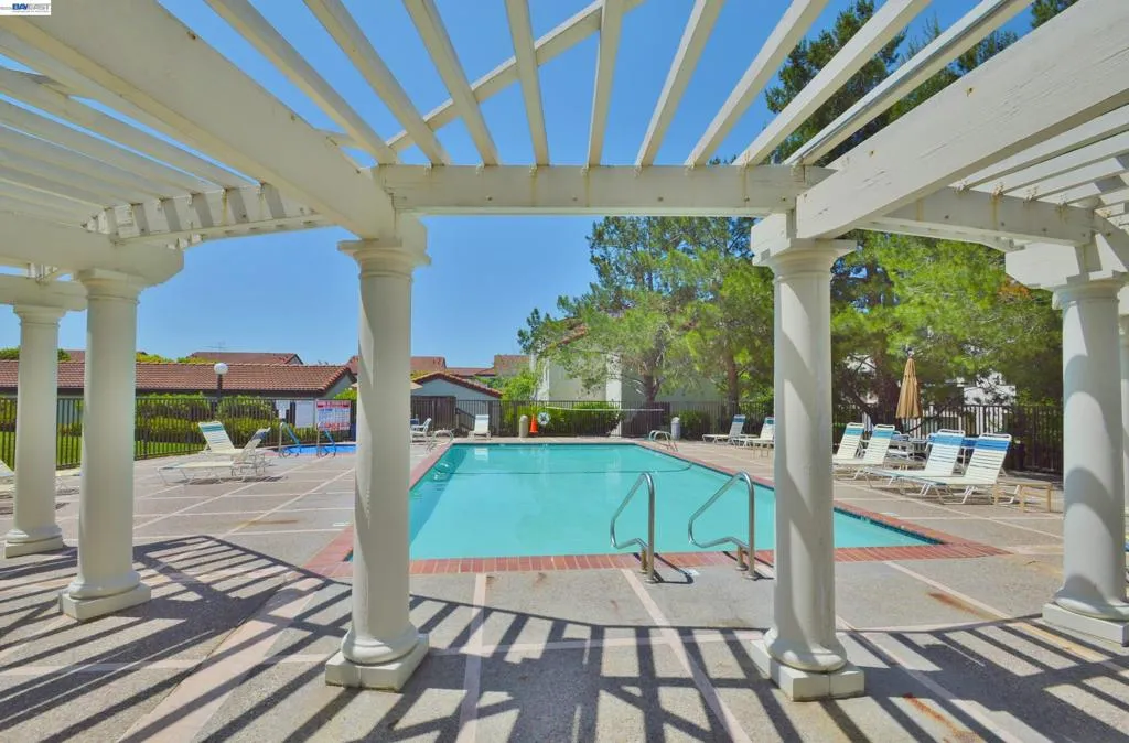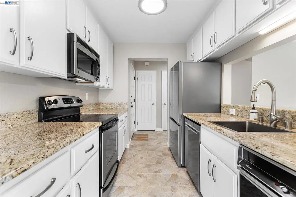 Welcome to this highly desirable no steps to entry unit offering comfort, convenience, and modern updates throughout. The kitchen features sleek granite countertops, a new refrigerator, and updated faucet, while the home also boasts all brand new Milgard Dual pane windows, a new water heater, fresh interior paint, and brand-new carpet. Both bathrooms have been thoughtfully refreshed with newly refinished tile, new shower doors, updated faucets and fixtures, freshly painted cabinetry, new medicine cabinets, and modern lighting. Additional upgrades include new blinds and the convenience of in-unit laundry with a brand-new stacked washer and dryer. Enjoy resort-style living in this gated community, complete with multiple swimming pools, a clubhouse with recreation space, game room, and exercise equipment. The unit also includes a covered parking space (#2). Ideally located just blocks from BART and major freeways, and minutes from downtown Castro Valley’s shopping, dining, and entertainment—this home offers the perfect blend of accessibility and lifestyle.