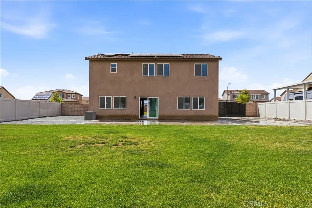 In the heart of Winchester where comfort, functionality, and curb appeal come together beautifully! This stunning home offers NO HOA, giving you the freedom and flexibility every homeowner desires. Situated on a quiet cul-de-sac, the property features gated RV access with a beautifully designed entry to the backyard perfect for storing your toys, trailer, or creating additional space for entertaining. A matching side gate provides convenient and seamless access to the backyard. Step outside to a thoughtfully designed outdoor space complete with a spacious cement patio, ideal for hosting gatherings, weekend BBQs, or simply relaxing and enjoying the Southern California lifestyle. The backyard is complemented by a retaining wall that enhances both functionality and visual appeal, while the lush green grass in both the front and backyard creates a vibrant, well-maintained look year-round. This home is also equipped with solar panels and a backup battery system, offering energy efficiency, lower utility costs, and peace of mind. With its combination of practical upgrades, full bed and bathroom downstairs, beautiful outdoor features, and prime location, this home truly has it all. Don’t miss your opportunity to make it yours!