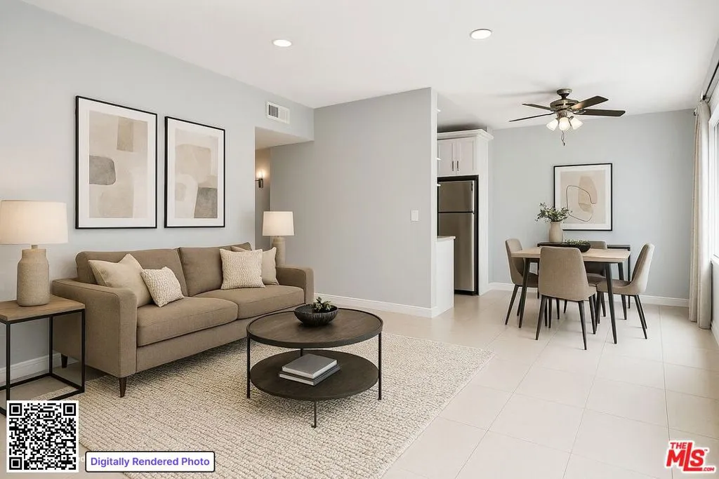 Renovated 2-bedroom, 2-bath residence located in the Hancock Park / Mid-Wilshire area offering a spacious open layout, abundant natural light, and a private balcony. The unit features tile flooring throughout, recessed lighting, ceiling fans, and a modern kitchen with stainless steel appliances including refrigerator, stove, dishwasher, and microwave. Both bedrooms offer generous space with mirrored closets, and bathrooms are updated with contemporary finishes. One garage parking space included. On-site laundry. Pets allowed subject to approval. Trash included. Tenant pays water, electric, and gas. Centrally located near Koreatown, The Grove, LACMA, shopping, dining, and major thoroughfares. Square footage is approximate and not verified.