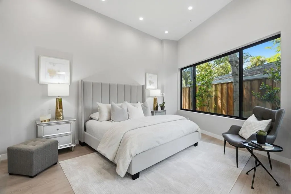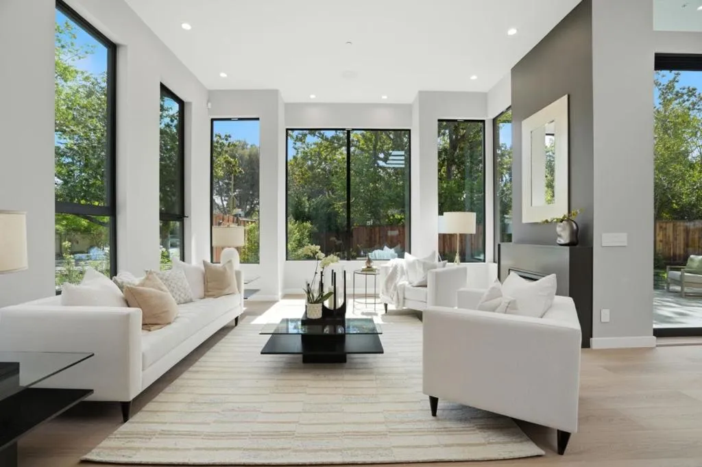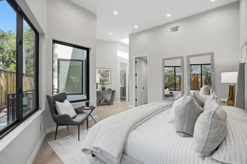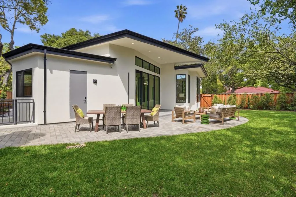 New construction on 9100 sq.ft. lot in prestigious Crescent Park neighborhood in Palo Alto, moments away from Stanford & Downtown. 6 beds, 5full & 2half baths expanding 5213 sq.ft of flexible & modern. Great Room with retractable stacking glass doors opening to spacious patio & backyard. Open main kitchen features huge center waterfall island with seating and perimeter cabinetry and concealed vent hood. All Miele appliances including induction cooktop, steam/convection oven, microwave, dishwasher, espresso center, side-by-side full-height wine cooler, refrigerator & freezer. Second kitchen with all Miele appliances & walk-in pantry. Primary bedroom suite features organized walk-in closet , en suite skylit bath with freestanding tub, dual-sink vanity, curbless skylit shower, heated towel bar, private automated commode room. Lower-level recreation room has cedar sauna, entertainment bar counter seating, dishwasher, refrigerator, built-in bottle/glass washer. Custom wine cellar with back-lit metal racking. Theater with sound walls, tiered seating & wiring for projector/screen. Other features: insulated floor & ceiling; laundry room with Miele washer/dryer, fully-owned solar; mud room (convertible as 2nd laundry), attached garage with EV outlet; dual-zone heating & air conditioning