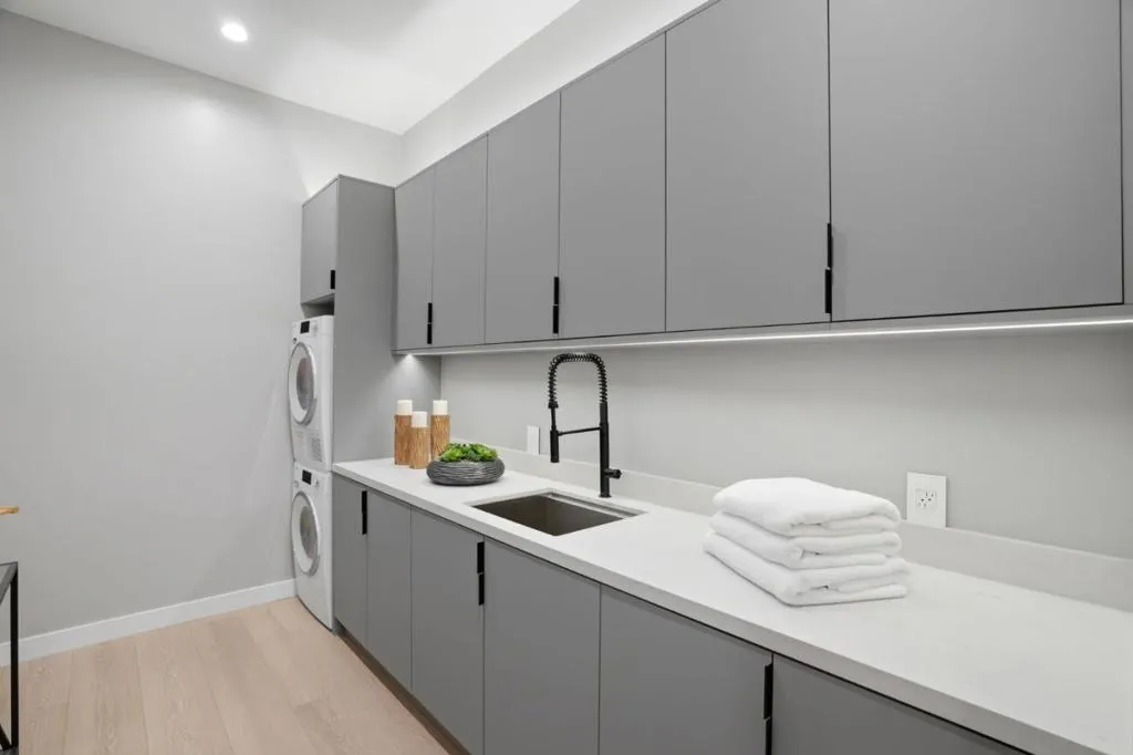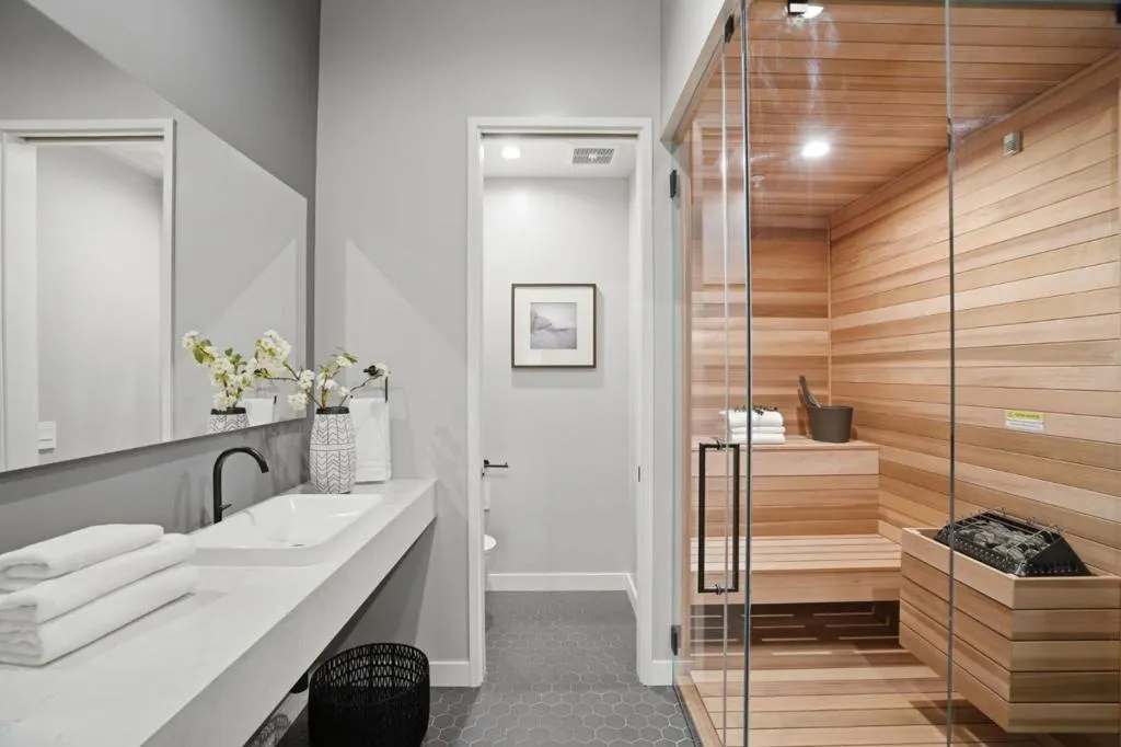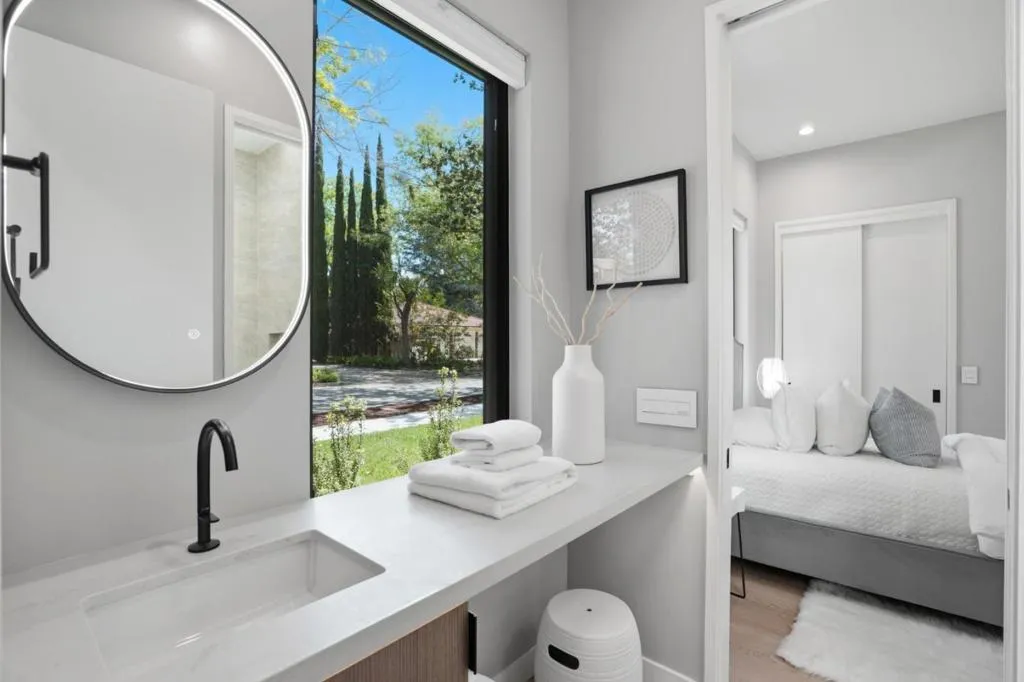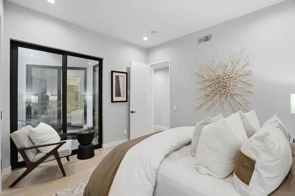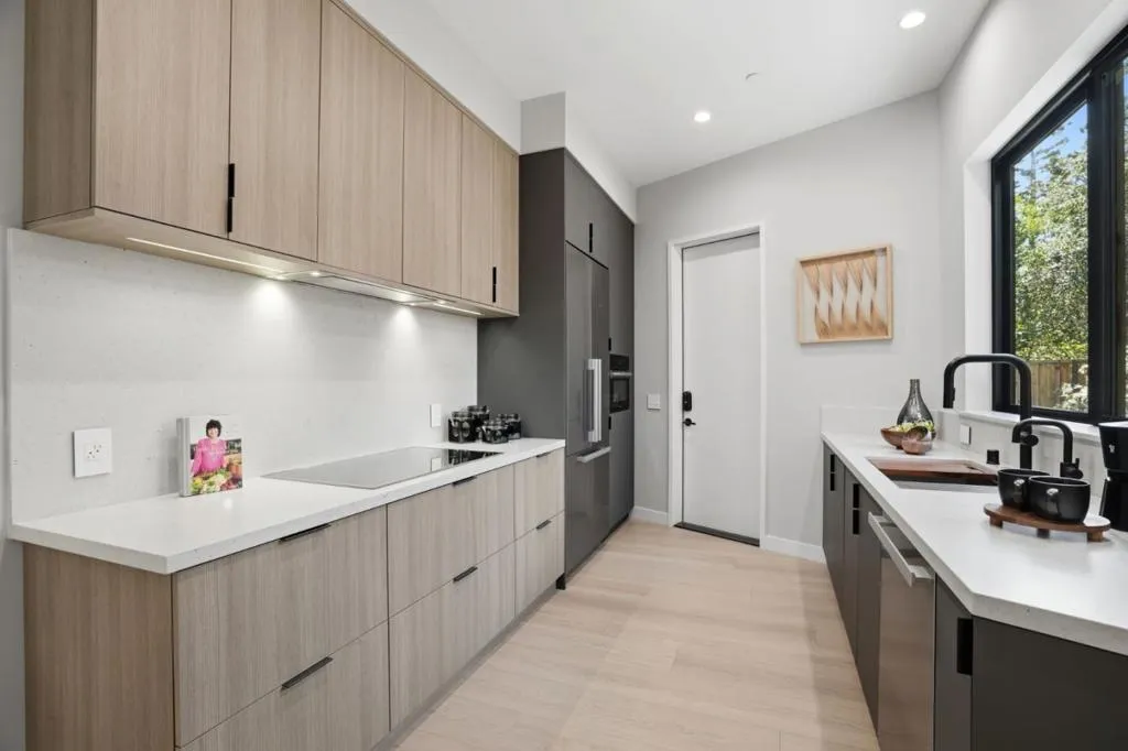New construction on 9100 sq.ft. lot in prestigious Crescent Park neighborhood in Palo Alto, moments away from Stanford & Downtown. 6 beds, 5full & 2half baths expanding 5213 sq.ft of flexible & modern. Great Room with retractable stacking glass doors opening to spacious patio & backyard. Open main kitchen features huge center waterfall island with seating and perimeter cabinetry and concealed vent hood. All Miele appliances including induction cooktop, steam/convection oven, microwave, dishwasher, espresso center, side-by-side full-height wine cooler, refrigerator & freezer. Second kitchen with all Miele appliances & walk-in pantry. Primary bedroom suite features organized walk-in closet , en suite skylit bath with freestanding tub, dual-sink vanity, curbless skylit shower, heated towel bar, private automated commode room. Lower-level recreation room has cedar sauna, entertainment bar counter seating, dishwasher, refrigerator, built-in bottle/glass washer. Custom wine cellar with back-lit metal racking. Theater with sound walls, tiered seating & wiring for projector/screen. Other features: insulated floor & ceiling; laundry room with Miele washer/dryer, fully-owned solar; mud room (convertible as 2nd laundry), attached garage with EV outlet; dual-zone heating & air conditioning