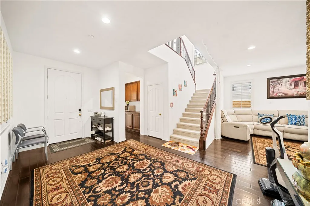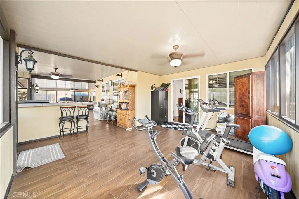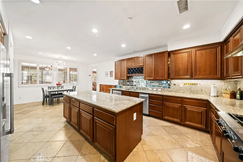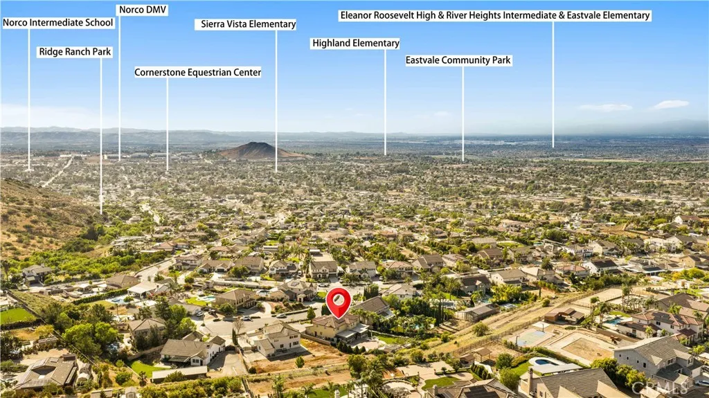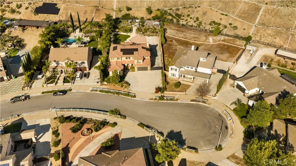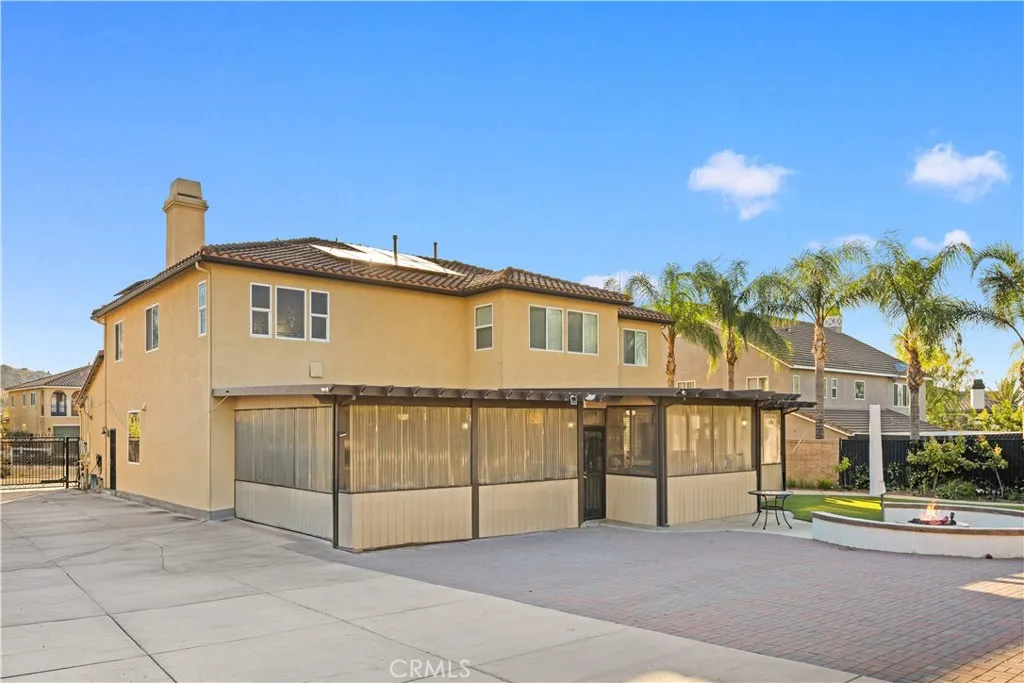 Located in the sought-after Norco Ridge Estates community in Norco, this expansive Plan 5 residence offers approximately 4,749 square feet of well-designed living space on a generous 33,976 square foot lot, with sweeping mountain and neighborhood views that define the Norco Hills setting. The home offers a total of 8 rooms and 8 full bathrooms, providing exceptional flexibility for a variety of living arrangements, including additional bedrooms, home offices, gyms, or creative spaces. A grand entry with a wrought iron staircase leads into formal living and dining areas, accented by dark wood flooring. The kitchen is designed for both everyday use and entertaining, with granite countertops, a large center island, abundant cabinetry, and a full suite of KitchenAid stainless steel appliances, including a 6-burner cooktop, double ovens, warming drawer, and trash compactor. Extending from the spacious family room is a fully enclosed sunroom with a built-in kitchen, creating additional usable interior space ideal for gatherings and year-round enjoyment. Additional interior highlights include office with custom built-in desk and cabinetry, a large upstairs bonus room, plantation shutters, and a well-equipped laundry room with storage upstairs, along with a secondary laundry setup in the garage for added convenience. The primary suite offers a private retreat with dual walk-in closets, and a bathroom featuring a soaking tub, separate shower, and detailed finishes throughout. The oversized backyard is designed for both relaxation and entertaining, featuring a fire pit, and multiple activity areas including a putting green, basketball court, and horseshoe pit. An elevated gazebo patio provides an additional vantage point to take in the surrounding views. Over $200,000+ has been invested in upgrades and improvements throughout the property, including a fully paid 32-panel solar system, upgraded 220V electrical in both the garage and yard, a soft water system, and drinking water filtration systems in both kitchens. Additional features include gated RV parking, a 4-car garage, and a cul-de-sac location that offers both space and privacy. A well-rounded property that combines size, flexibility, and scenic surroundings in one of Norco’s premier neighborhoods.