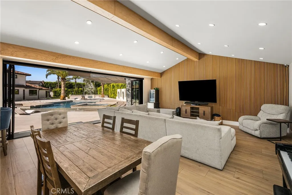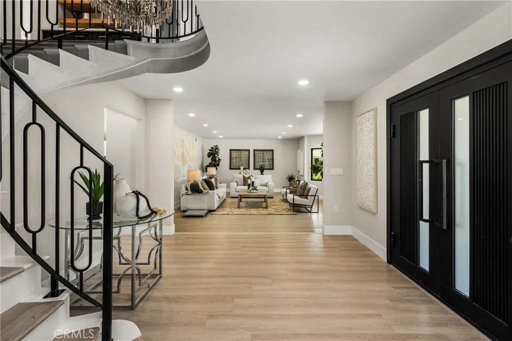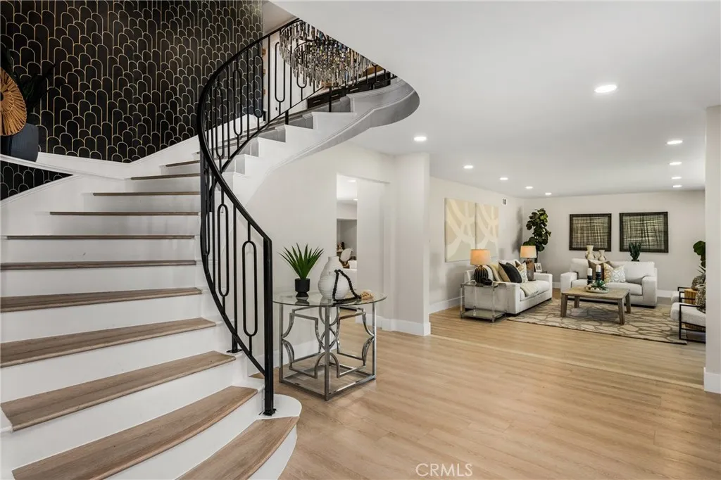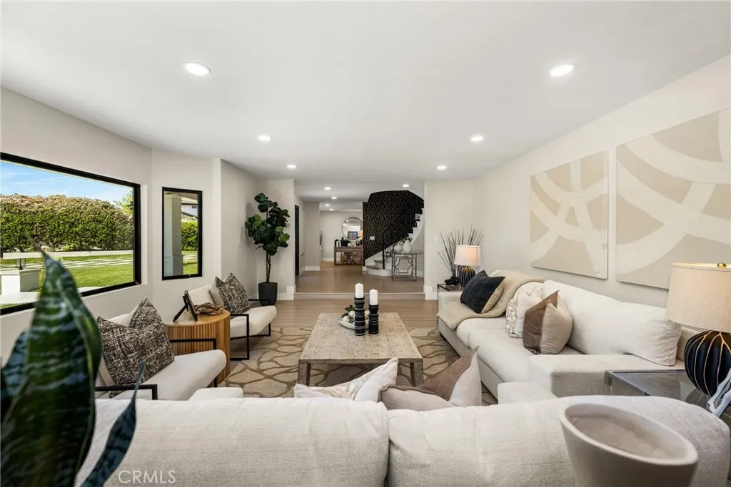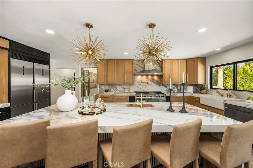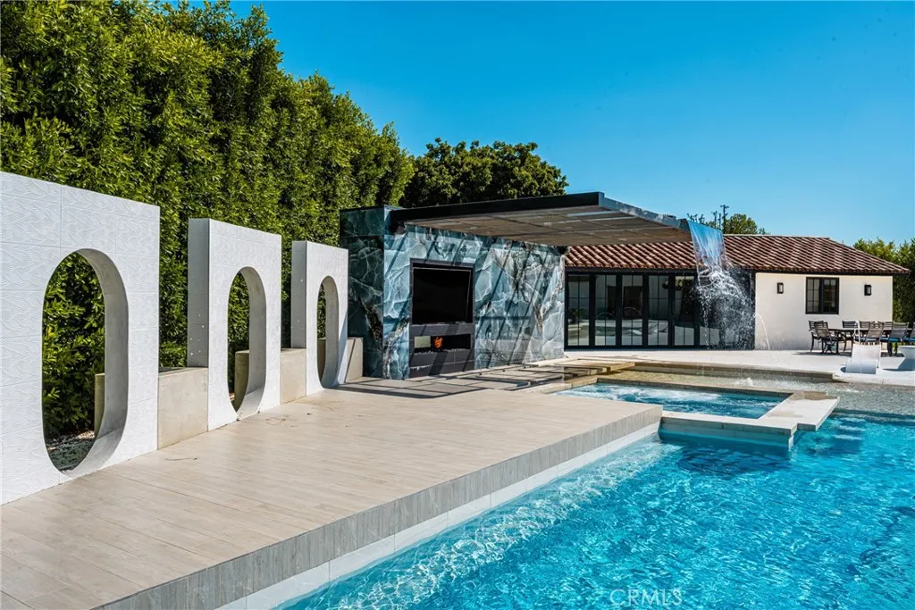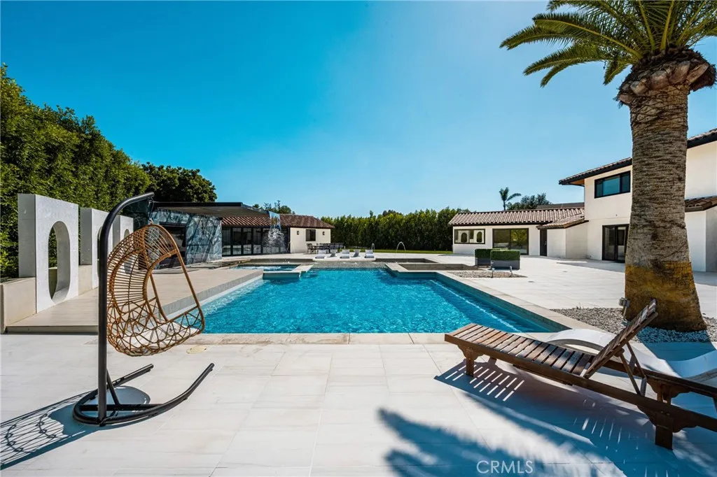 Set in the prestigious community of Villa Park, this fully remodeled estate delivers an exceptional blend of luxury, scale, and modern functionality across an expansive lot. The main residence with approx. 5,123 SQFT +/- features five spacious bedrooms and five bathrooms, thoughtfully designed for both comfort and privacy. A guest suite with its own private bath is conveniently located on the main level, while upstairs, the primary retreat offers a true sanctuary with en-suite. Additional bedrooms include a Jack-and-Jill layout as well as private en-suite configurations, each with built-in closet systems. At the heart of the home is a striking, one-of-a-kind kitchen designed for both everyday living and elevated entertaining. It is complemented by an oversized butler’s pantry and an expansive laundry room, delivering both style and practicality. Step outside to a resort-caliber backyard that feels like a private oasis escape. The pool and entertainment area is designed to impress, featuring a Baja shelf, dual heaters and filters, bubblers, and deck jets. Surrounded by lush landscaping, fire pits, fountains, and integrated TVs, this outdoor space is built for unforgettable gatherings. A large grass area and dedicated sports court further enhance the property’s versatility. The detached guest house with Approx. 1,679 SqFt +/- offers two bedrooms and one bathroom, complete with its own dedicated HVAC system, voice-controlled lighting and shades, a spacious walk-in closet in the primary bedroom, and in-closet laundry for ultimate convenience. Additional highlights include a fully paid-off solar system with a Tesla Powerwall, providing energy efficiency and peace of mind. This turnkey estate represents a rare opportunity to own a meticulously upgraded home where every detail has been carefully curated for modern luxury living. There's simply too much to capture in words - this extraordinary home must be experienced in person to truly appreciate it. This large lot is situated on a 29,146 square foot lot per parcel map. It also includes a 400 square foot basement that is a surprising to all.