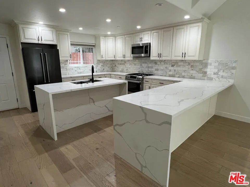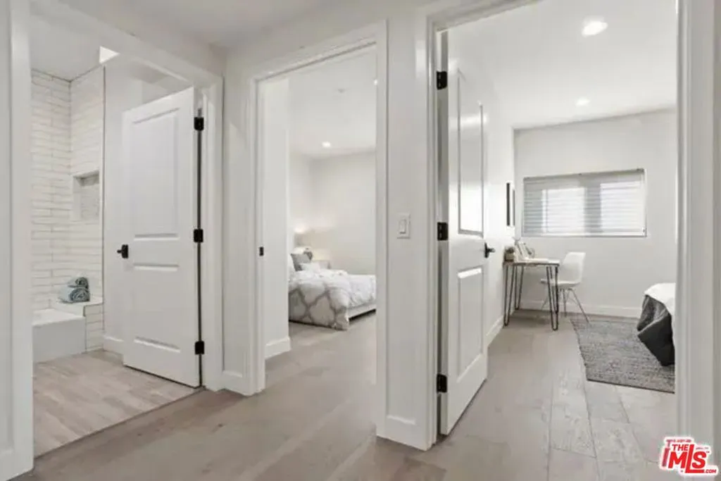 Welcome to this stunning modern townhome located in an exclusive newer construction community built in 2019. This beautifully designed residence offers approximately 2,218 sq ft of bright, open living space with 3 bedrooms, 3 bathrooms, plus a versatile bonus den/loft perfect for a home office, family room, or flex space. The home showcases soaring high ceilings and expansive windows, creating an airy, light-filled atmosphere throughout.What makes this home especially desirable is its prime end-unit location positioned furthest from the street for enhanced privacy, quieter surroundings, and excellent natural light. Due to its orientation, you also have a distant view of the iconic Hollywood Sign, adding a subtle touch of classic Los Angeles charm. Adding even more value, this unit features a private outdoor patio, a rare and highly sought-after upgrade within the community perfect for relaxing, entertaining, or outdoor dining.Inside, the home features:* Soaring high ceilings and abundant natural light* Elegant engineered hardwood flooring throughout* Spacious open-concept floor plan* Gourmet kitchen with quartz waterfall island, natural stone backsplash, and premium cabinetry* Bosch stainless steel appliances, newer LG refrigerator, and Samsung washer & dryer* Designer bathrooms with frameless glass showers* Walk-in closet and generous storage space* Attached side-by-side 2-car garage with direct entryPhotos showing furniture are for illustrative purposes only. The home will be delivered unfurnished.Prime Central LA LocationLocated in a quiet yet highly convenient neighborhood with easy access to major thoroughfares and the U.S. Route 101, making commuting throughout Los Angeles effortless. Enjoy close proximity to some of the city's most sought-after destinations including Larchmont Village, Hancock Park, Koreatown, Downtown Los Angeles, Hollywood, Miracle Mile, and Los Feliz all known for vibrant dining, shopping, and entertainment.