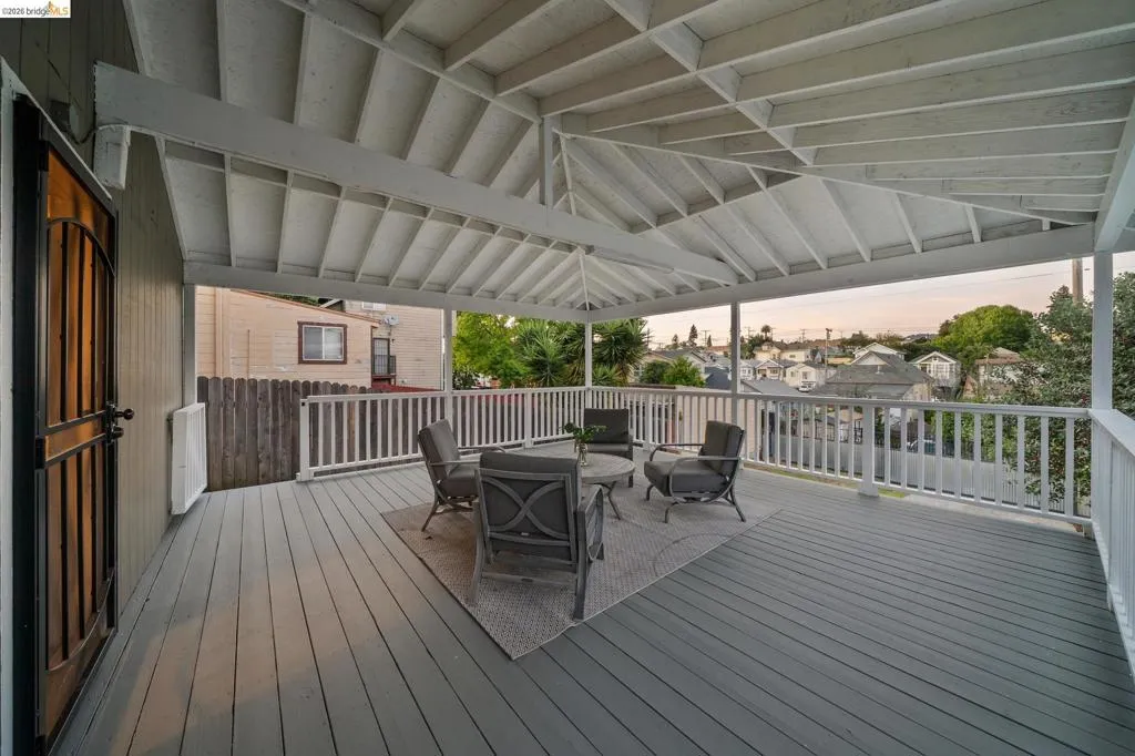 Perfect for owner-occupancy plus rental income, two parties owning together, or as an income property! Fully vacant, spacious and renovated duplex in the vibrant Rancho San Antonio neighborhood adjacent to Ivy Hill. Each unit features four bedrooms and two full bathrooms. The open-concept living, dining, and kitchen areas are designed for modern living, highlighted by windows that flood the spaces with natural light. Upstairs, enjoy views of the hills, providing a serene backdrop to the urban setting. Each unit features a refreshed kitchen with stone countertops and stainless steel appliances. The windowed bathrooms and functional layouts ensure comfort and utility throughout. Outdoor living is a highlight, featuring a private fenced yard, a balcony for the upper unit, and an expansive deck for the lower unit — perfect for relaxation or entertaining. The property provides exceptional convenience with ample parking and driveway access from both the front and rear of the lot. This versatile duplex offers flexible ownership/use options and is a great way to build equity in the competitive East Bay market!