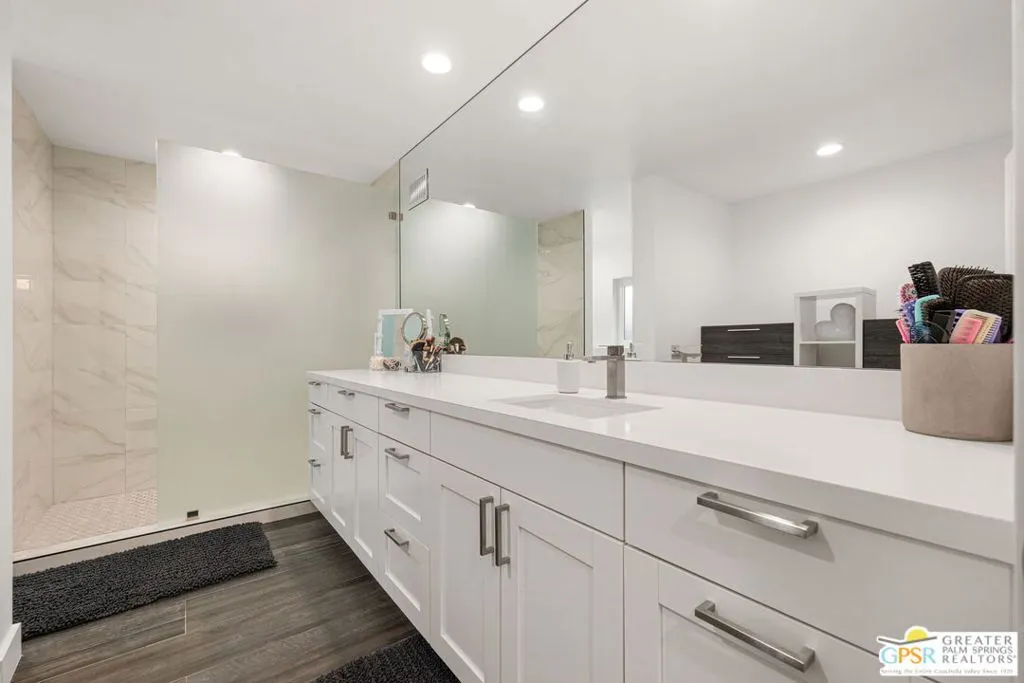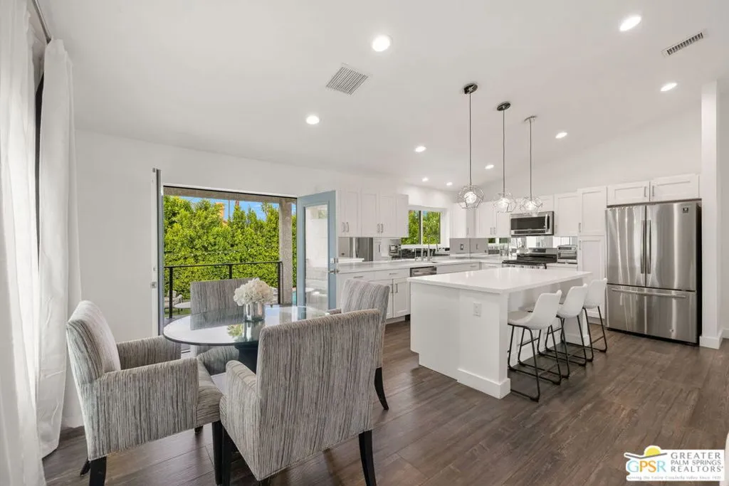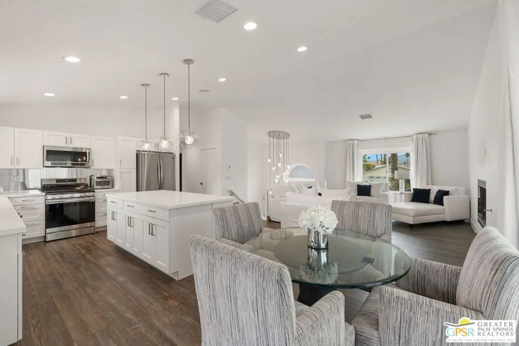 Absolutely stunning, fully reimagined desert retreat located at the end of a quiet cul-de-sac in a desirable, family-friendly neighborhood just moments from the community park. This home shows like a model and offers a true move-in ready opportunity completely redesigned inside and out with no detail overlooked. Step inside to a light-filled, open-concept floor plan featuring all-new flooring, doors, windows, cabinetry, fixtures, and finishes throughout. The beautifully updated kitchen anchors the space with modern design, flowing seamlessly into expansive living and dining areas ideal for both everyday living and entertaining. Every inch of this home has been thoughtfully upgraded, including brand-new bathrooms, appliances, dual HVAC systems, water heater, and more delivering both style and peace of mind. Step outside to your private resort-style backyard where luxury meets comfort. A newly redesigned pool features all new plumbing and equipment, finished in a stunning white Pebble-Tec surface, complemented by a raised spa with elegant waterfall edge. Mature ficus hedging surrounds the property, creating exceptional privacy, while the custom oversized fire pit offers the perfect setting for gathering with friends and family. The outdoor space has been completely transformed with new landscaping, irrigation, and low-maintenance turf designed for effortless enjoyment year-round. Additional highlights include fully owned solar for energy efficiency and reduced utility costs, no HOA, and a finished, climate-controlled garage currently utilized as a versatile flex space ideal for a gym, studio, or home office. Offered freshly updated throughout and meticulously maintained, this home delivers the perfect combination of design, functionality, and lifestyle. Furnishings may be available under a separate contract outside of escrow.