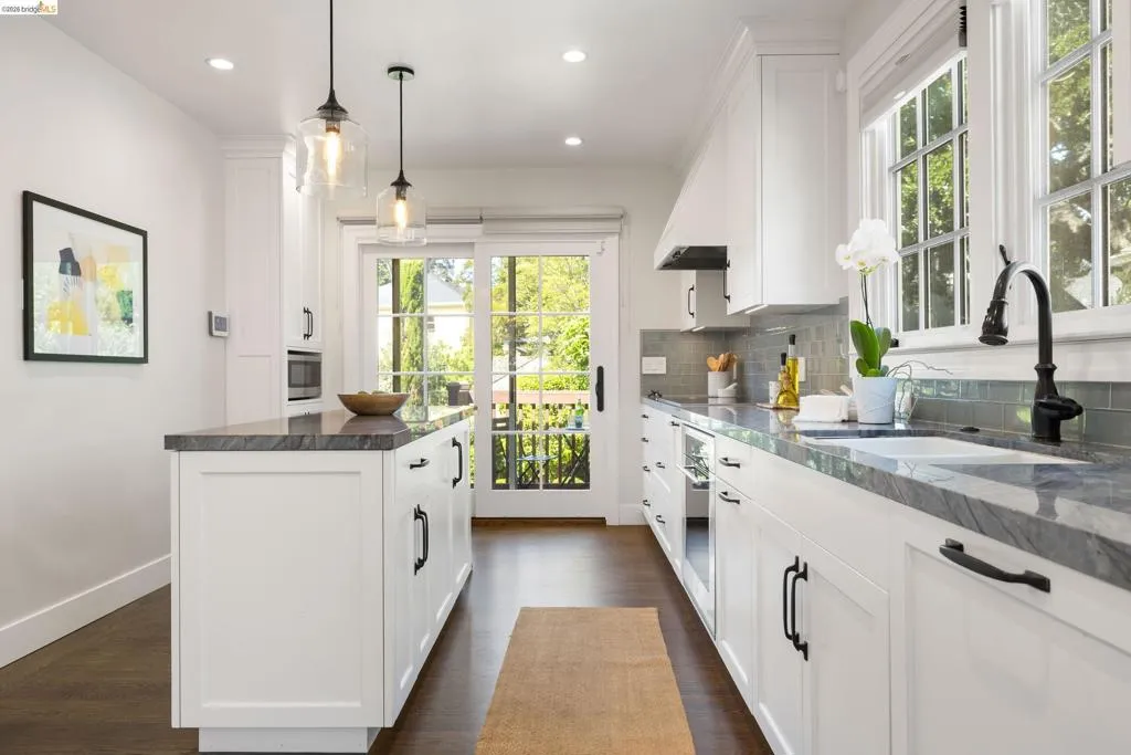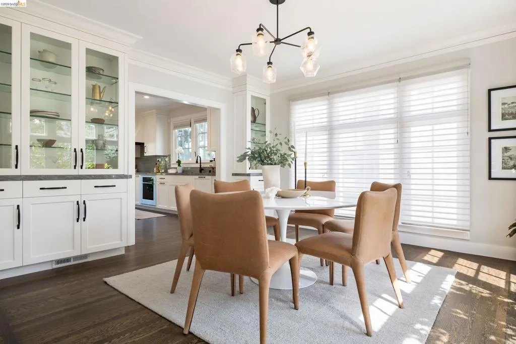 Tucked along a quaint street in Oakland's beloved Crocker Highlands, 835 Grosvenor Place feels less like a house you simply enter into and more like a story you immerse yourself in and continue. With five bedrooms and three and a half baths, this recently remodeled home balances its classic traditional character with modern ease. Mornings begin with sunlight spilling across warm hardwood floors, drifting through generous windows and settling into each corner of the home. The main level unfolds with an easy, welcoming rhythm: a spacious living room anchored by a classic fireplace invites conversation, while the formal dining room with built-in cabinetry is made for lingering dinners that turn into evenings. Just beyond, an updated kitchen opens effortlessly to a rear deck where the indoors blend into a level backyard, ready for garden beds, weekend play, or quiet moments under open sky. A dedicated office offers a place to focus, tucked just enough away from the day’s flow. Upstairs, three bedrooms and two baths provide space to unwind, including a beautifully remodeled primary suite complete with ample closet and a thoughtfully updated bath. Downstairs, two additional bedrooms, a full bath, and a wet bar create an ideal setting for guests, extended family, home office, play space, or gym. With its timeless character, flexible floor plan, and prime location, 835 Grosvenor Place is a home to grow into and one to truly call your own.