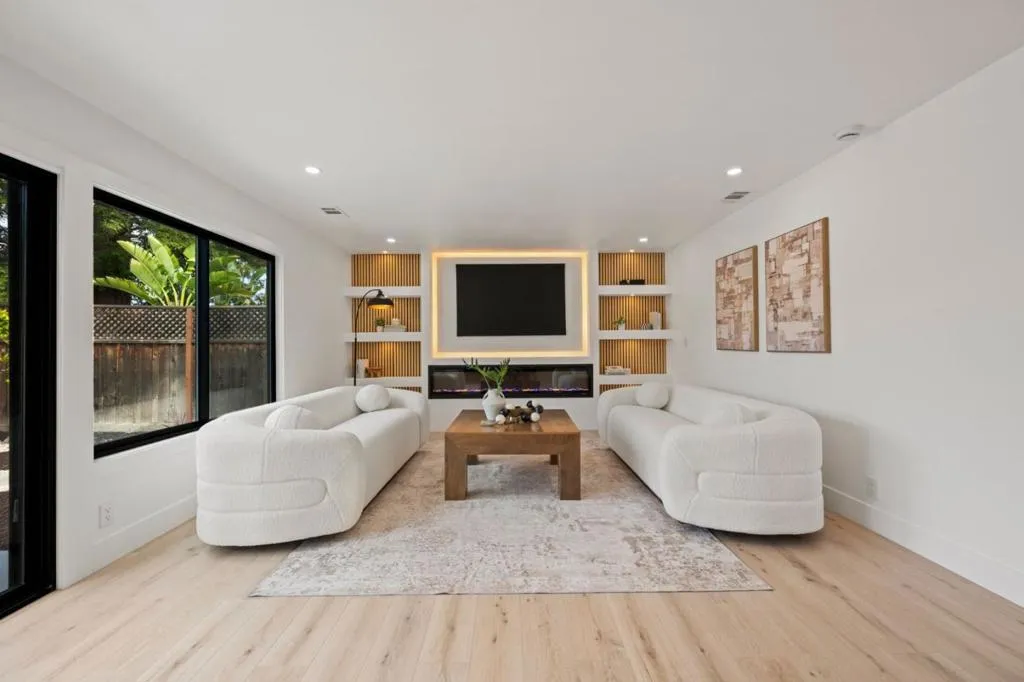 Set on a desirable corner lot, this inviting 4-bedroom, 2-bath Cupertino home has been thoughtfully updated with both function and comfort in mind. Clean, low-maintenance landscaping gives the home a well-kept feel from the start. Inside, recessed lighting and an open layout create a bright, natural flow throughout the space. The kitchen centers around an island with modern pendant lighting, complemented by stainless steel appliances and soft-close cabinetry. A cozy electric fireplace and a spacious bar area add a nice touch of character without feeling overdone. Smart features like a Nest Doorbell and Nest Thermostat bring everyday convenience. The bathrooms are finished with a clean, modern look, complete with LED mirrors and subtle designer touches. The backyard is set up for both relaxing and entertaining, featuring a gazebo, swing set, fire pit area, and outdoor lighting designed to be enjoyed without the extra upkeep. All of this in a well-located Cupertino neighborhood, close to top-rated schools, parks, shopping, and nearby tech campuses.