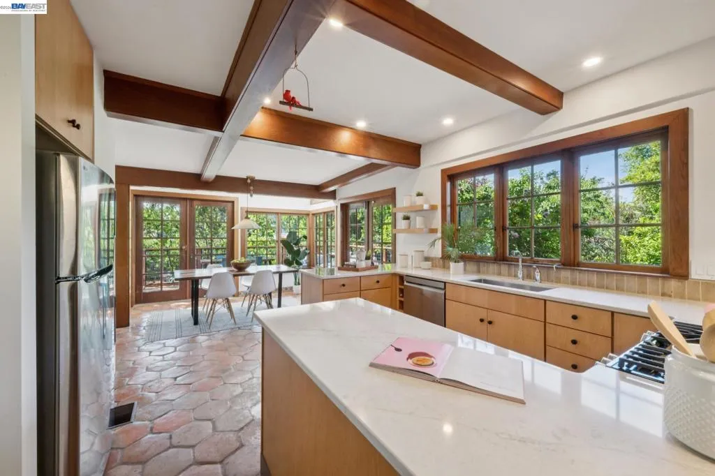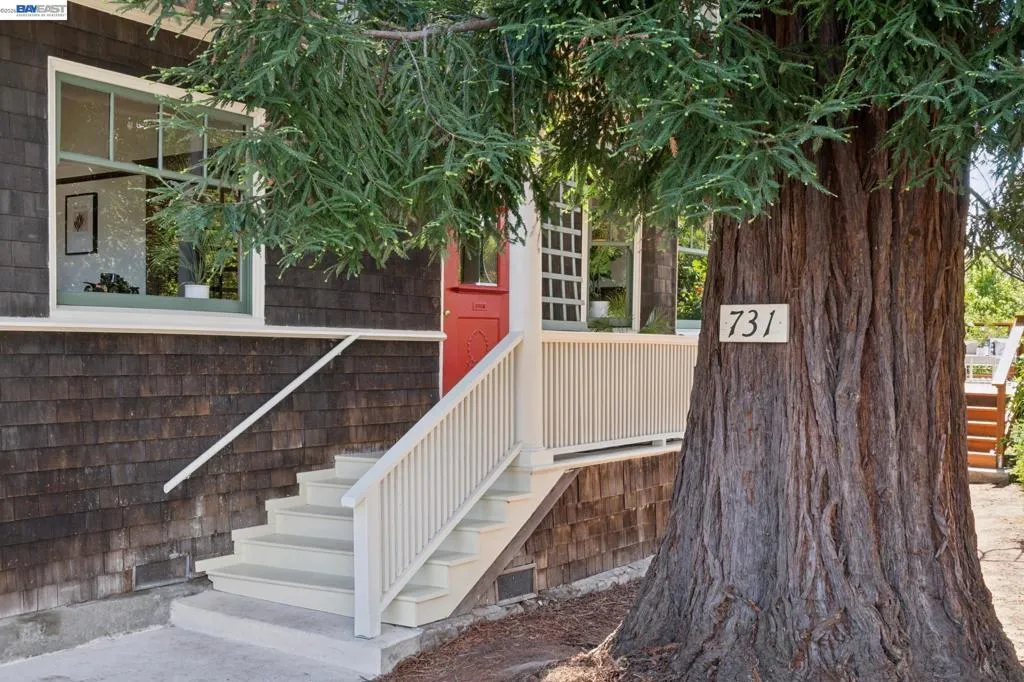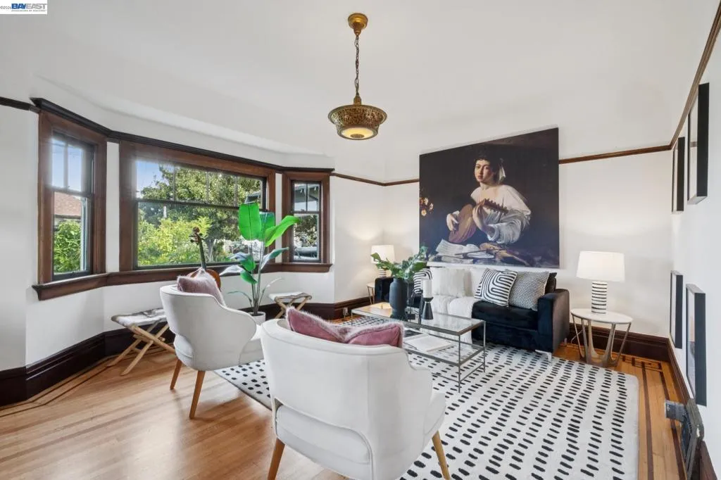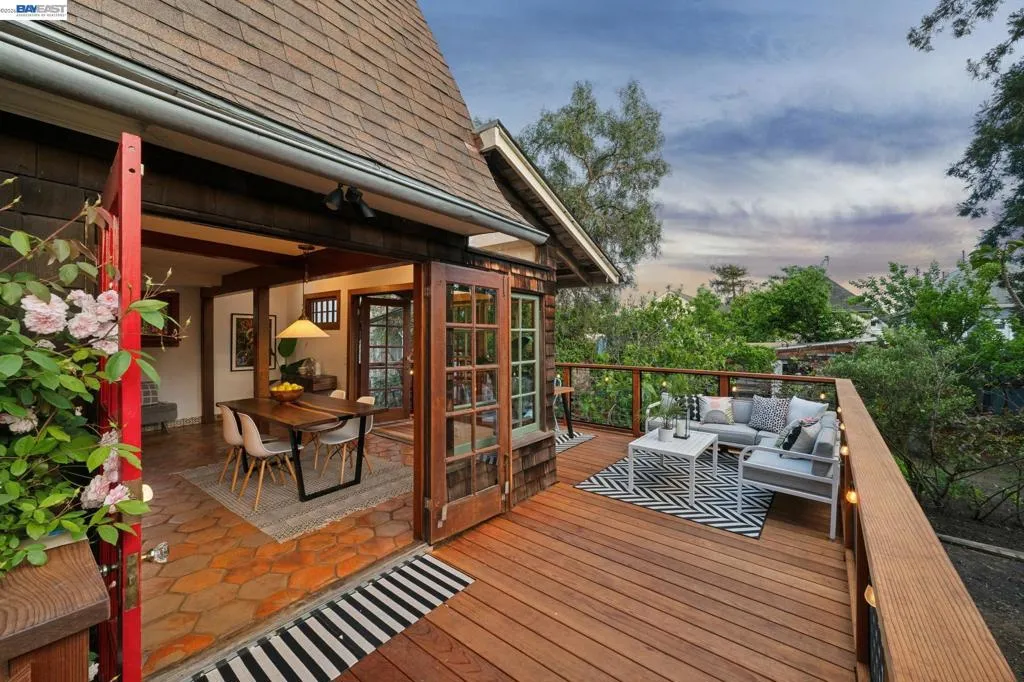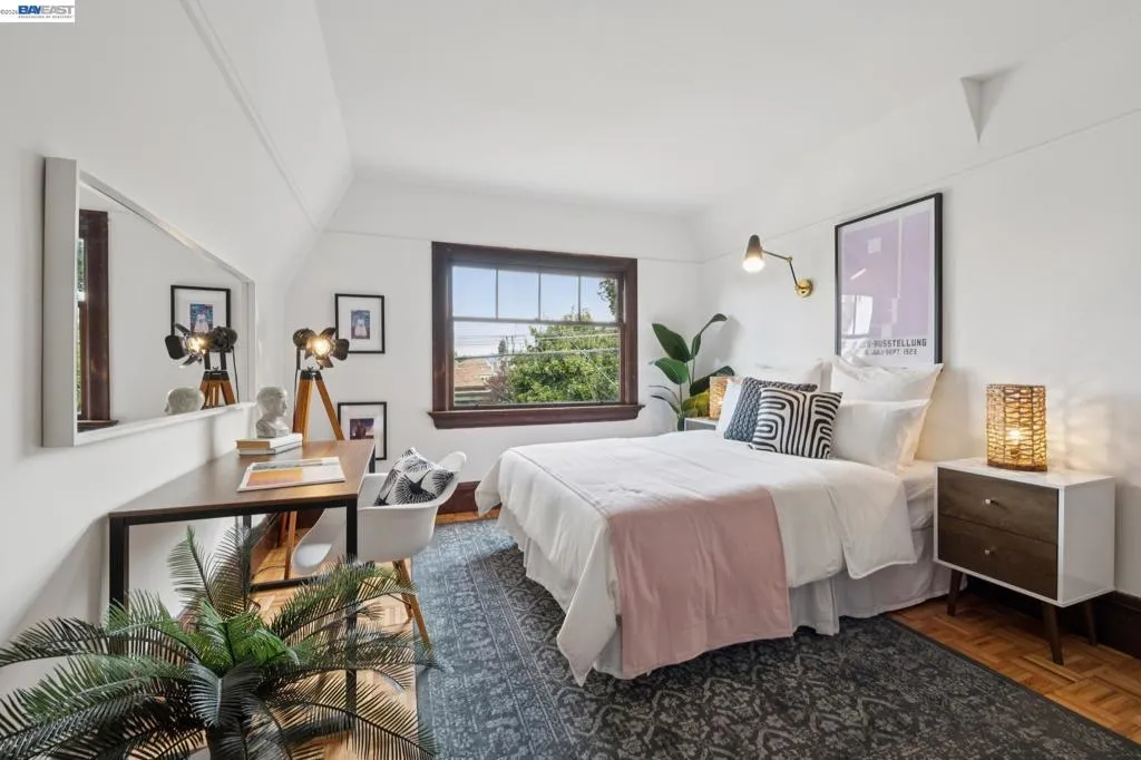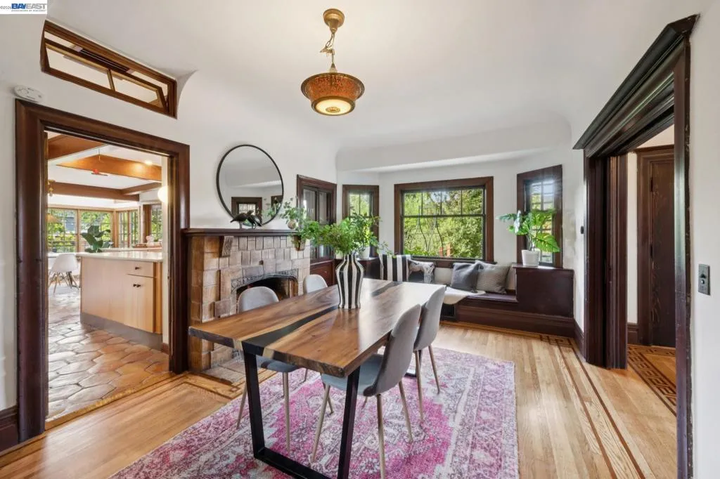 Set on a generous double lot shaded by towering redwoods and threaded with fruit trees, this 4+BD/3BA Victorian Farmhouse unfolds across three levels and 2,697 SQFT of rich architectural detail: coved and beamed ceilings, leaded glass, picture railings, inlaid hardwood floors, and wainscoting. This historic home was built in 1898 by John MacGregor, whose daughter Helen grew up inside these rooms before going on to serve as secretary to Governor Earl Warren. Pause at the threshold, then move through rooms that reward attention — formal front living room, dining room anchored by a fireplace, architecture that has only grown more sure of itself with age. The heart of the home is a sunny eat-in kitchen with new appliances, countertops, and cabinets, opening to a vast deck and backyard with room to entertain, garden, and expand. A full bath and laundry complete the first floor. Three bedrooms and two baths occupy the second; two more flexible rooms and playful dormers await on the third. Plentiful off-street parking and storage. Ashby BART is nearby and if the lore is true, pieces of BART's 12th Street and 19th Street stations are already inside, tiled onto the walls by a former owner with ties to the system. Over a century of remarkable history. Bring what’s next.