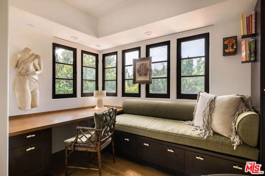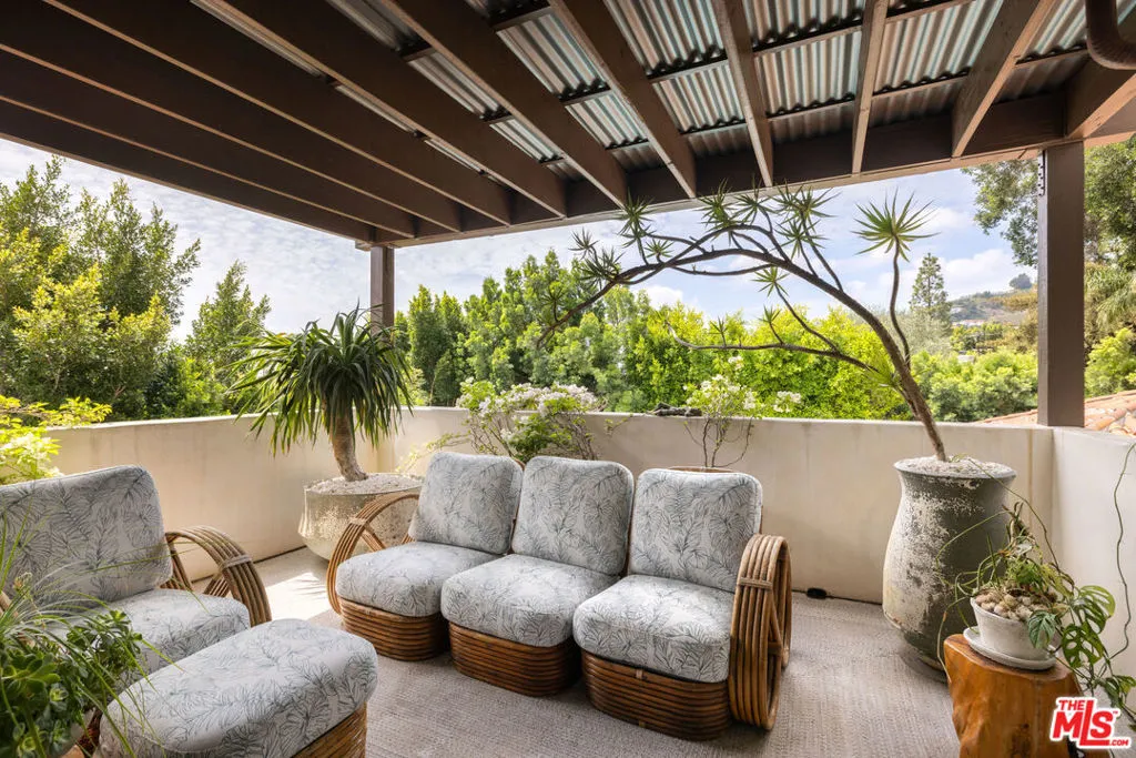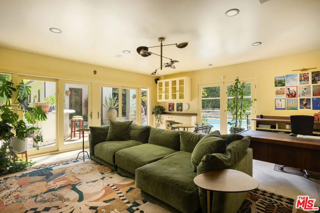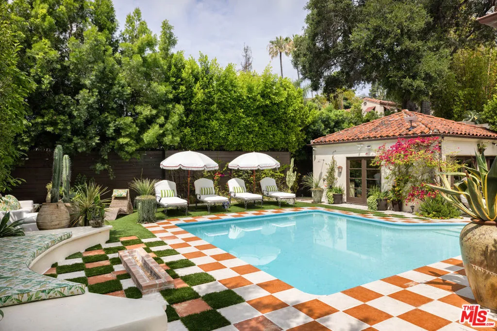 Tucked into the foothills, this gated Mediterranean Architectural Digest-published residence offers privacy, scale, and effortless indoor-outdoor living - available as a fully furnished lease. Beautifully appointed, the home features warm hardwood floors, designer-curated furnishings, and a seamless flow throughout. The gourmet kitchen, complete with high-end appliances, ample storage, and an oversized island, opens to a sunlit family room with French doors leading to the outdoors. A library, powder room, and two en-suite guest bedrooms complete the main level. The upper level offers an additional en-suite guest bedroom and a generous primary suite with a walk-in closet, spa-like bath, and private terrace with city and hillside views. Outside, the property unfolds into a lush, resort-like setting with a covered terrace, pool, hot tub, outdoor kitchen, firepit, and multiple areas for dining and entertaining. A separate detached pool house provides added flexibility. Fully gated with a double entry and security cameras. Ideally located near Runyon Canyon and Wattles Garden Park, and just minutes from Hollywood, West Hollywood, and the Sunset Strip. Furnished lease only.