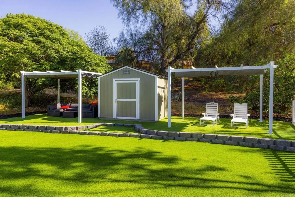 Discover your own private countryside oasis at 1002 Summer Glen Drive in Ramona, California—a meticulously renovated custom home offering refined rural living on 3.04 usable acres. Built in 1978 and thoughtfully updated throughout, this single-story residence spans approximately 2,065 square feet with 4 bedrooms and 2 bathrooms. It masterfully blends modern sophistication with timeless countryside charm in a serene foothill setting. The expansive open-concept floor plan centers on a fireplace and is framed by two large sliding glass doors that showcase stunning landscape views. The fully remodeled kitchen features new cabinets, modern appliances, generous counter space, a center island, and a breakfast peninsula overlooking the living area and grounds. New high-efficiency LED can lighting enhances the bright, inviting interiors. Each bedroom provides direct sliding glass door access to the exterior, while the primary suite includes an ensuite bathroom with dual sinks and a walk-in shower. Both bathrooms boast subway tile showers and new marble countertops and cabinets. Comprehensive upgrades include new flooring throughout, fresh interior and exterior paint, a brand-new high-efficiency HVAC system, and a beautifully renovated wraparound porch that extends living space outdoors. Outdoor amenities define this private retreat: a sparkling in-ground pool nestled among mature trees, and fully usable acreage ideal for gardening, raising animals, and equestrian pursuits, with access to nearby horse trails, hiking, and biking paths. Secure entry is provided by two rod-iron front gates and a private black iron gate at the corner of Olive Street and Summer Glen Drive. Additional features include a new well pump for efficient water management, an attached 1-car garage, a detached 2-car garage with potential to convert into an ADU featuring its own private entrance, and a storage shed. The rear open field presents further excellent potential for an Accessory Dwelling Unit or guest house, subject to local regulations. Located within the Ramona Unified School District, the property affords a tranquil rural lifestyle. This exceptional home masterfully combines extensive renovations, with the enduring appeal of expansive countryside living in San Diego County. It represents a rare opportunity for families, equestrian enthusiasts, or those seeking refined privacy and versatility on usable land. Professional photography and virtual tours are recommended to fully appreciate the quality of the updates and the peaceful setting.