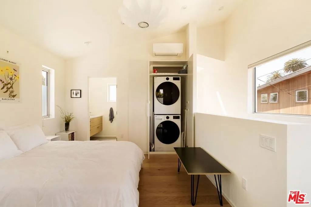 A rare opportunity to lease a brand-new, thoughtfully designed ADU in the heart of Venice, offered fully furnished and ready for immediate enjoyment. This light-filled 1-bedroom, 1-bath home spans two levels and blends clean, modern design with warm, natural finishes. The main level features an open-concept living and kitchen area with polished concrete floors, abundant natural light, and seamless indoor-outdoor flow. The kitchen is equipped with new stainless steel appliances, sleek cabinetry, and everything needed for comfortable day-to-day living. Upstairs, the private bedroom retreat offers a peaceful, airy space with beautiful light, generous storage, and an en-suite bathroom. A/C and in-unit laundry provide added convenience, making the home as functional as it is stylish. Designed for easy living, this newly constructed ADU has never been lived in and offers a turnkey experience ideal for those seeking a furnished lease with flexibility in one of LA's most sought-after neighborhoods. Enjoy a private, secure entrance, private patio, and access to a shared outdoor dining area, perfect for relaxing or entertaining. Street parking is easy and readily available. Gas and WiFi are included for added convenience. Ideally located just moments from Abbot Kinney's renowned shops and restaurants, and a short walk or bike ride to the beach, this is Venice living at its best.