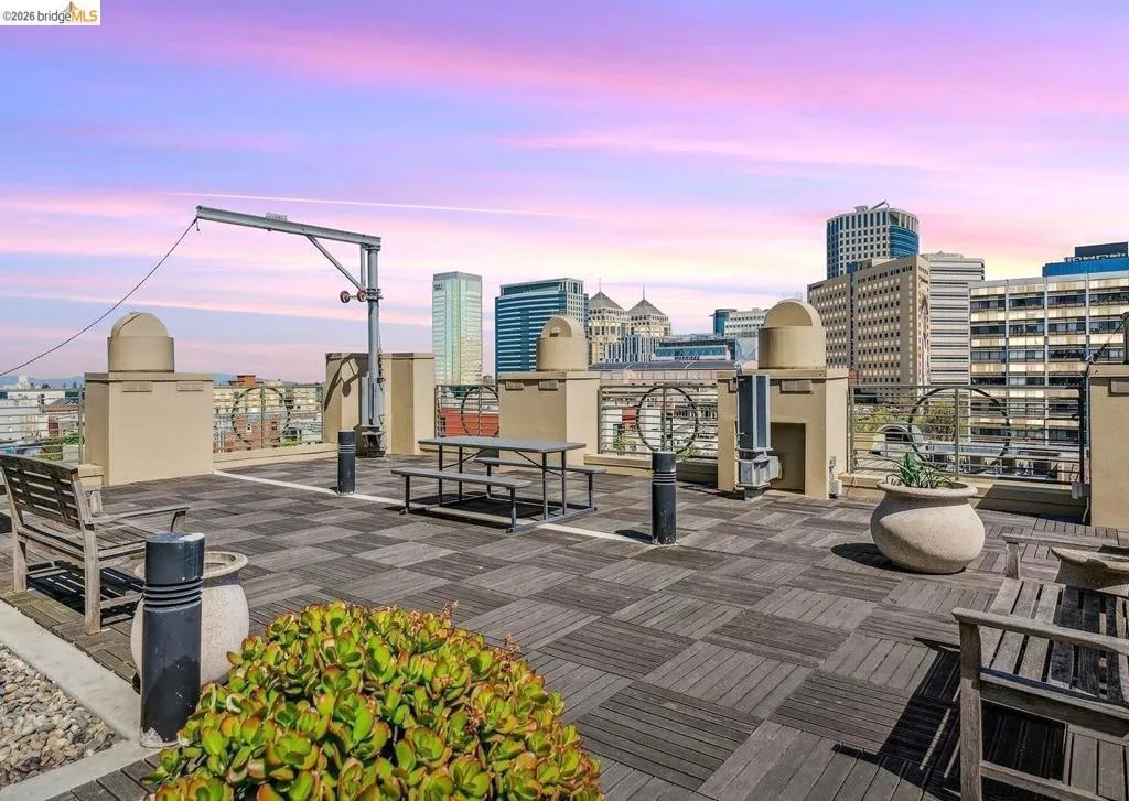 Situated in the heart of Chinatown, this home offers unbeatable access to BART, Amtrak, Highways 880/980/24, Alameda, Jack London Square, and more. Enjoy the vibrancy of urban living while benefiting from the tranquility of a secure complex featuring a rooftop garden and an impressive high ceiling lobby.This spacious 2 bedroom condo is located on the 3rd floor and offers a bright, airy atmosphere throughout. The open floor plan includes in unit laundry, central heating and air conditioning, and triple pane windows for enhanced comfort and energy efficiency. The HOA dues include water, sewer, garbage, and one assigned underground parking space, providing excellent value and convenience.