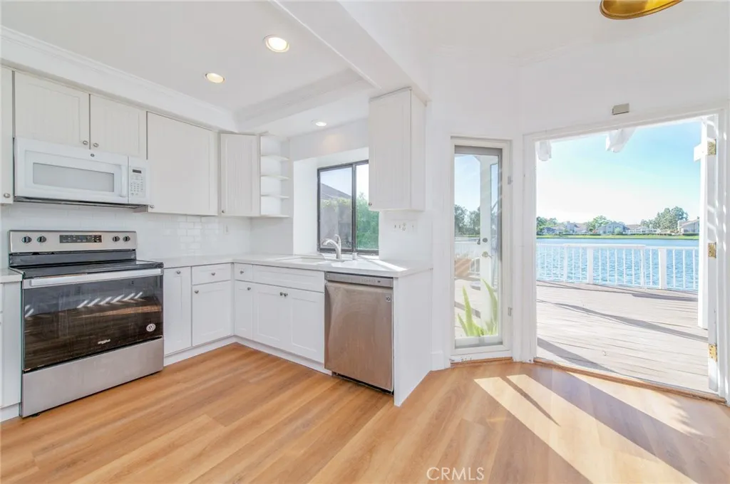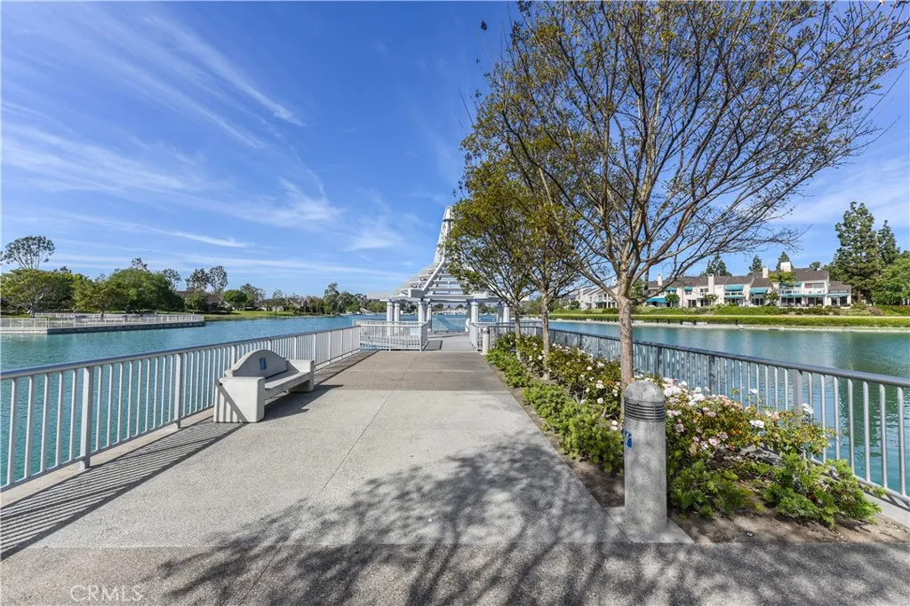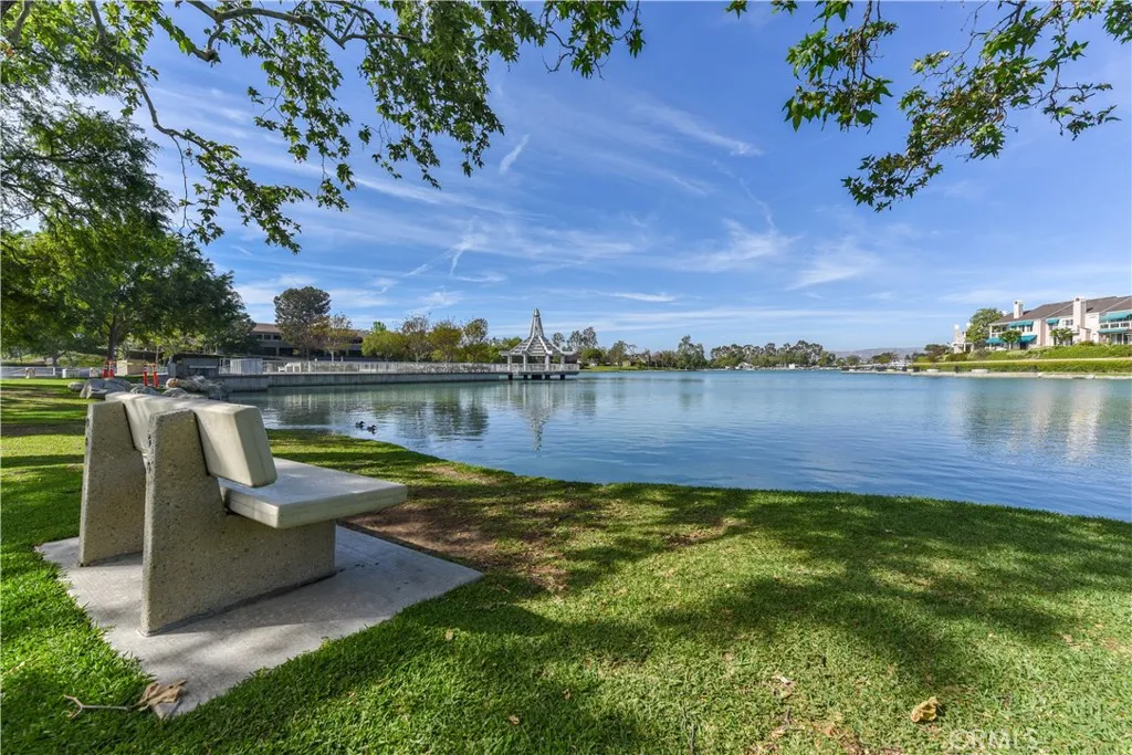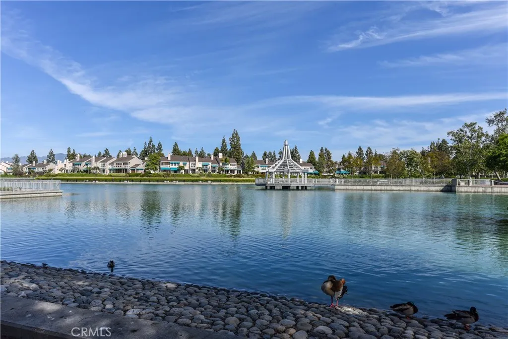 (*** 180-degree Lake Front View) Lakefront home with gorgeous Non-Blocked lake-view. Cathedral ceiling, skylight, recessed lighting, plantation shutter, ceiling fan. Wood flooring throughout. Two upstairs master suites, the primary one has panoramic lake views. Downstairs full bath & bedroom w/bay window. Lake view from living room/kitchen bay window and French door. Quartz kitchen counter tops, garden window. Relax on the lake-front deck and enjoy your resort-style georgeous lake view. Quiet neighborhood. 10-minute walk to Springbrook Elementary School/Woodflower Park, 5-minute drive to Southlake Middle School. 8-minute drive to Woodbridge High. 15-minute drive to UCI. Lots of amenties. Close to everything in Irvine.