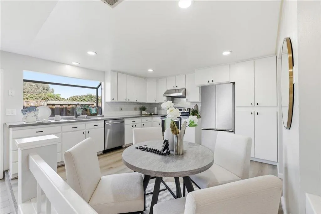 This rare residence is beautifully positioned to capture panoramic bay views, where stunning sunrises create a serene and inspiring backdrop every day. The home features an airy high-ceiling design that enhances the sense of space and light throughout the living areas. The expansive master bedroom offers a private retreat with generous proportions and a peaceful atmosphere, perfectly complementing the homes thoughtful layout. With four well-designed bedrooms, the floor plan provides exceptional flexibility for guests, a home office, or multigenerational living. There is also a downstairs office that can be easily converted into a fifth bedroom if needed. Ideally located, the property offers unmatched convenience just minutes from major Peninsula employers, transportation routes, and everyday essentials. Residents also enjoy nearby lifestyle amenities including the Bay Club Athletic Center, Nob Hill grocery store, and the scenic Bay Trail. Zoned for highly regarded schools including Sandpiper Elementary, Ralston Intermediate, and Carlmont High School, this home combines panoramic views, airy architectural design, spacious living, commuter-friendly access, and excellent educational opportunities. An outstanding place to call home.