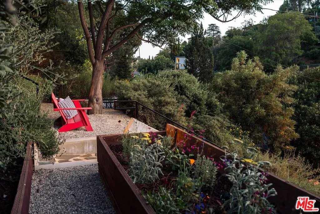 Magical Mount Washington. Privately perched above a gorgeous garden, with panoramic vista views, this quintessential hillside retreat was the one-time residence of iconic new wave band Devo during their early days recording in 1970s Los Angeles. Ascend through an extensive native garden with raised bed planters, fruit trees, colorful spring blooms, and shady spots to quietly take in nature and the surrounding canyon. Greeted by a gorgeous redwood porch and wraparound deck, the well apportioned home of 1,290sf has been incredibly maintained and upgraded over the years. An open concept plan offers living and dining spaces with large picture windows bringing in lots of natural light and views. The functional kitchen offers plenty of storage plus washer/dryer closet. A large primary bedroom with bathroom orients toward the yard and hillsides beyond. Two additional well-sized rooms and a hall bath offer comfort and privacy for the entire family. Music lovers will appreciate the 4th bedroom/den, currently used as a listening room with custom built-in wood cabinetry for your favorite LPs and record player. The outdoor entertaining spaces are a sizable extension to the home with high quality finishes like the large redwood deck with shaded pergola, cafe lighting, and premium outdoor kitchen with Lynx grill and Viking side burner. A detached studio of 151sf is wonderful as an office space, gym, or workshop. Don't miss the observatory perch, a secluded place to unwind at sunset. Owned solar panels and Tesla Powerwall offset significant energy costs and provide off-grid back up power. This special, nature-centered retreat provides quick access to the neighborhood's secret walking trails, Mount Washington Elementary, the Metro A Line station, and Figueroa Boulevard with some of our favorite hotspots - Gold Line, Cookbook Market, Hippo, Blind Barber, and Highly Likely!