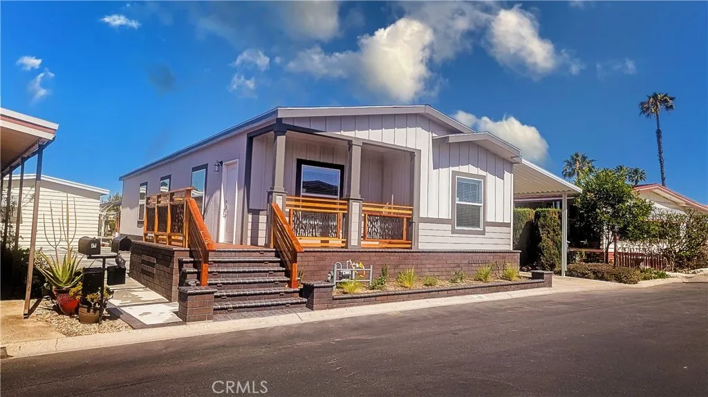 WOW GORGEOUS INSIDE AND OUTSIDE!! Step into this, BRAND NEW 2026 Manufactured Home it Featuring 3 bedrooms, 2 baths a dining area and a separate laundry room with an Open Floor Concept. This Home its Located in a Senior COMMUNITY IN ORANGE COUNTY. Perfect Located close from Disneyland, Angel Stadium, Yorba Regional Park, Horse Trails nearby, but not a touristy area still very peaceful and quiet! Once inside, you’re greeted by 9-foot ceilings, a skylight that fills the home with natural light, recessed lighting in living room and kitchen, ceiling fans and Central Heating and Air conditioning that keeps you comfortable year-round. Kitchen featuring luxurious quartz countertops, a Gorgeous Island, a Walk-in Pantry and Top-of-the-Line Stainless Steel Appliances (stove, refrigerator, microwave, and dishwasher). The kitchen flows into the dining area and spacious living room perfect for entertaining. Both bathrooms are finished with matching quartz countertops, light mirror and walk-in tile master bath. Large size master bedroom with walk-in closet a direct access to a stunning rear porch perfect for enjoying your morning coffee or just to step out for some fresh air. A Cover carport for multiple cars, a beautifully brick steps with light welcome you to the entrance porch. The curb appeal here truly stands out. The home is just as gorgeous outside as it is inside everywhere you look you'll be amaze. This home is located in Sunkist Gardens, a beautifully kept community with a pool, spa, clubhouse, and fun resident activities that create a vibrant and welcoming lifestyle. MUST SEE!!