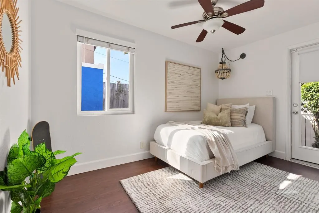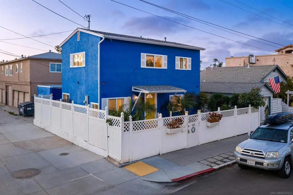 Just two blocks from the beach and one block to Newport Avenue, in the heart of Ocean Beach, this beautifully situated two-story corner-lot residence embodies relaxed coastal luxury with unmatched walkability. Perfectly positioned for effortless access to the sand, surf, and OB’s vibrant dining and nightlife scene, the home offers a rare combination of lifestyle and unique versatility of income potential. The upper level features light-filled living room, two-spacious bedrooms and bath, while the lower level functions as a flexible living quarters with a full bedroom, bath, and dual kitchen setups each complete with its own refrigerator, stove, microwave and laundry. With three separate entry doors, the layout is ideal for multigenerational living, or rental flexibility. Extensive upgrades elevate the home throughout, including dual-pane windows, central A/C and heating, and a new roof. The interior has been fully refreshed with new paint, all-new LED recessed lighting and fixtures, and brand-new carpet on the staircase. Both bathrooms have been tastefully remodeled for a clean, modern feel. Outdoors, the property is finished with vinyl fencing, front and rear gates, a welcoming front porch, and a private concrete patio perfect for coastal evenings. A detached one-car garage with alley access adds convenience and storage. Just moments from Ocean Beach’s iconic shops, cafés, and shoreline, this is a rare opportunity to own a highly flexible coastal property in one of San Diego’s most beloved beach communities, perfect as a primary residence, vacation retreat, or investment.