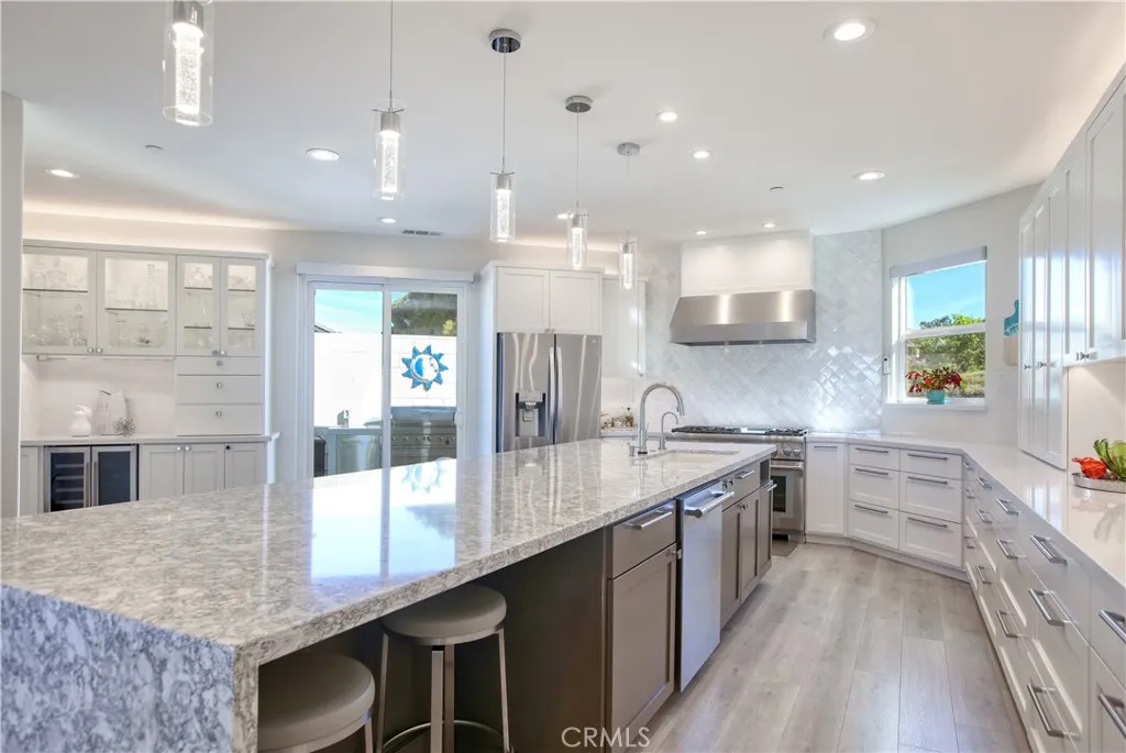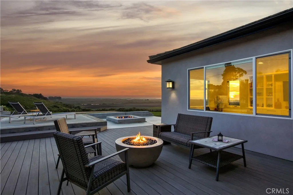 Absolutely stunning, this exceptional home delivers a true “wow factor” from the moment you enter. A rare find on the Central Coast, this single-level residence offers approximately 4,278 sq ft of beautifully renovated living space on almost an 1-acre, perfectly positioned to capture breathtaking, panoramic ocean views. Thoughtfully redesigned with a refined vision and high-end finishes throughout, the home showcases sweeping ocean views from most interior spaces, as well as from the expansive back yard. Designed with both style and function in mind, the entertainer’s kitchen is a showpiece featuring an oversized island (approx. 4' x 13') with a striking granite countertop, absolutely stunning designer backsplash and premium appliances including Thermador gas range/oven, dishwasher, and drawer-style microwave. The island space is designed with a waterfall edge and dual side bar seating for at least 6. Included in the design is a dedicated wine/beverage bar with abundant storage, a butler’s pantry, laundry room designed to accommodate an additional refrigerator & separate freezer. A half bath and an inside storage room is also on this wing. The open-concept living area is light and spacious, enhanced by custom built-ins, a new gas fireplace and a dramatic 6-panel retractable glass door system that seamlessly connects indoor living to the outdoor deck. A bonus media/living room was added for a more private quiet setting just off the main living - all with a view. The primary suite is a private sanctuary accessed through double doors with ocean views from bed, a beautifully updated bath with marble tile shower enclosure, more than generous storage, a walk-in closet, plus an additional oversized second closet off the bedroom area. On the opposite wing of the home are 2 spacious guest ensuite bedrooms, one with ocean views, along with a private home office. The attached oversized 3-car garage is equally impressive, added recently featuring two modern opaque glass-paneled garage doors equipped with ultra-quiet openers and two electric vehicle charging stations. Designed to accommodate additional household storage needs. Last but not least, step out onto the back deck and take in panoramic ocean views. Choose to relax from either the covered patio with floor to ceiling electric retractable screens & heaters for year round use, the additional deck area, the built in fire pit area or the very generous back yard area. Views galore! This is a must see!