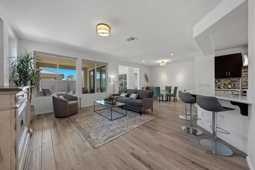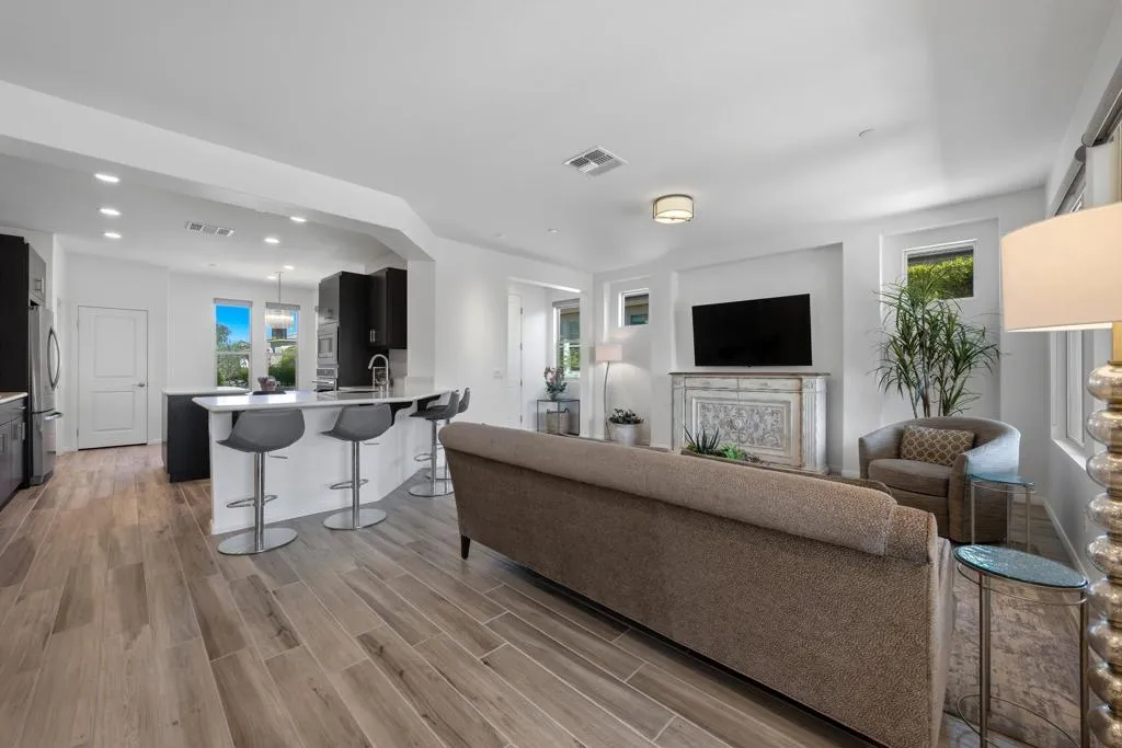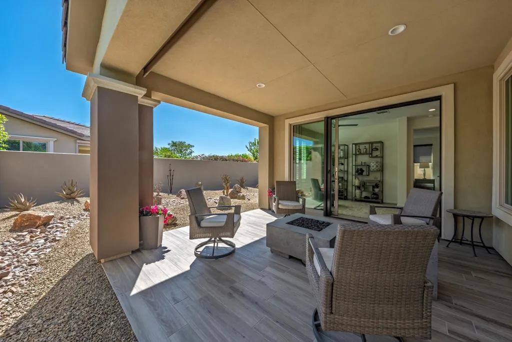 Fully Furnished...Pristine Clean...Lock & Leave Desert Located Just Around the Corner from the Clubhouse in Trilogy at the Polo Club. The gently lived in Monaco Model is perfectly positioned to offer warm morning light on the east facing back patio and beautiful desert sunset skies with mountain views from the cozy courtyard. The open floorplan offers comfort and flexibility for hosting and entertaining friends and family, with nice separation between the primary suite and guest bedroom. The convenient flex space off the great room can be utilized as a sunny sitting room, office, art studio or formal dining room. The thoughtfully designed kitchen features soft-close doors and drawers, accented backsplash, stainless steel GE Cafe appliances, prep island with pull-outs, bar seating, kitchen nook and pantry. Plantation shutters and custom window coverings throughout. Neutral wood-like tile flooring throughout the main living areas. Numerous cam lights with dimmable switches to showcase your favorite artwork. The garage features a 50-amp EV charging outlet, built-in cabinetry, epoxy flooring, an A/C mini-split, and a water shut-off monitoring system. Offered Fully Furnished and Priced to Move, This Immaculate Property Wont Last Long. Schedule your showing today! Trilogy Polo Club Membership available for transfer.