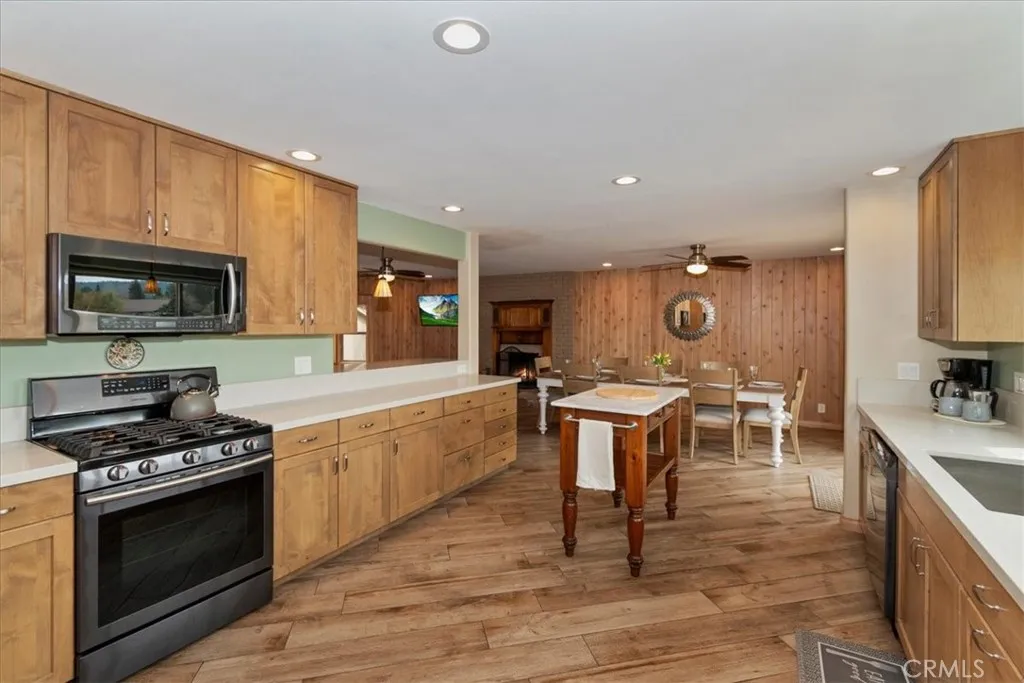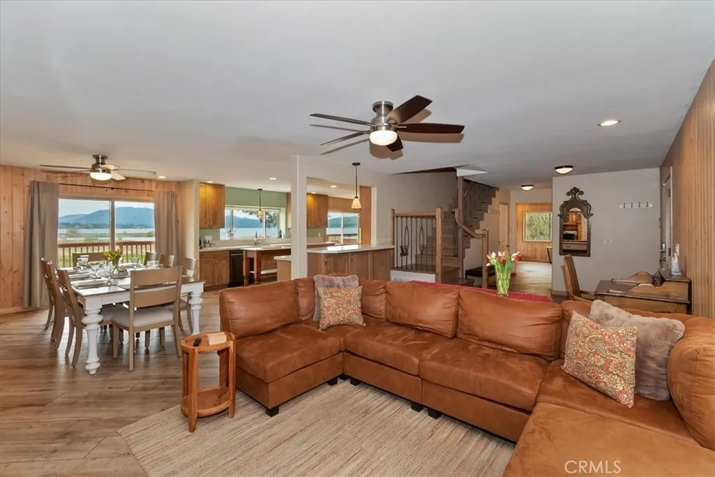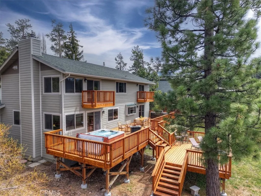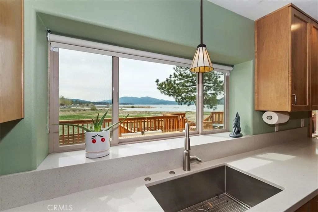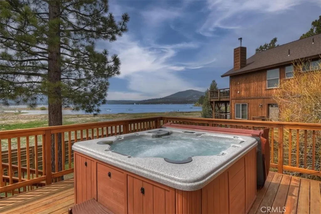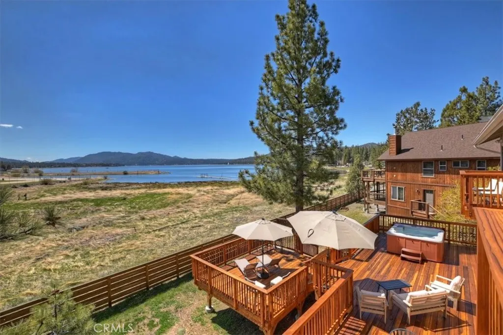 Welcome to lakefront living at its finest in the highly sought-after Eagle Point. Perfectly positioned on a generous 14,168 sq ft lot, this beautifully updated 4-bedroom, 3-bathroom home offers 2,755 sq ft of thoughtfully designed space and an unbeatable front-row seat to Big Bear Lake. Step inside to an open-concept floor plan designed for both comfort and entertaining, featuring a spacious living area anchored by one of three fireplaces, creating the perfect mountain ambiance year-round. The expansive kitchen is ideal for hosting, complete with alder cabinetry, ample counter space, and seamless flow into the main living and dining areas. This home was made for gathering and unwinding, with a separate game room featuring a pool table and its own fireplace—perfect for après-ski evenings or summer nights after a day on the lake. The primary suite is a true retreat, offering its own fireplace, added soundproof insulation for privacy, and a cozy, elevated feel. Thoughtful upgrades are found throughout, including cedar-lined closets, porcelain flooring downstairs, waterproof vinyl flooring upstairs, and a striking oak staircase that ties the home together with warmth and style. Step outside onto the back deck and take in what may be some of the most breathtaking sunset views in Big Bear. With lakefront access and dock rights, this property offers the ultimate waterfront lifestyle. Enjoy front-row seats to the 4th of July fireworks over the lake and the magical torchlight parade on New Year’s Eve—right from your own backyard. Complete with an attached 2-car garage and located in one of Big Bear Lake’s most desirable neighborhoods, this home is the perfect blend of luxury, comfort, and iconic mountain living.