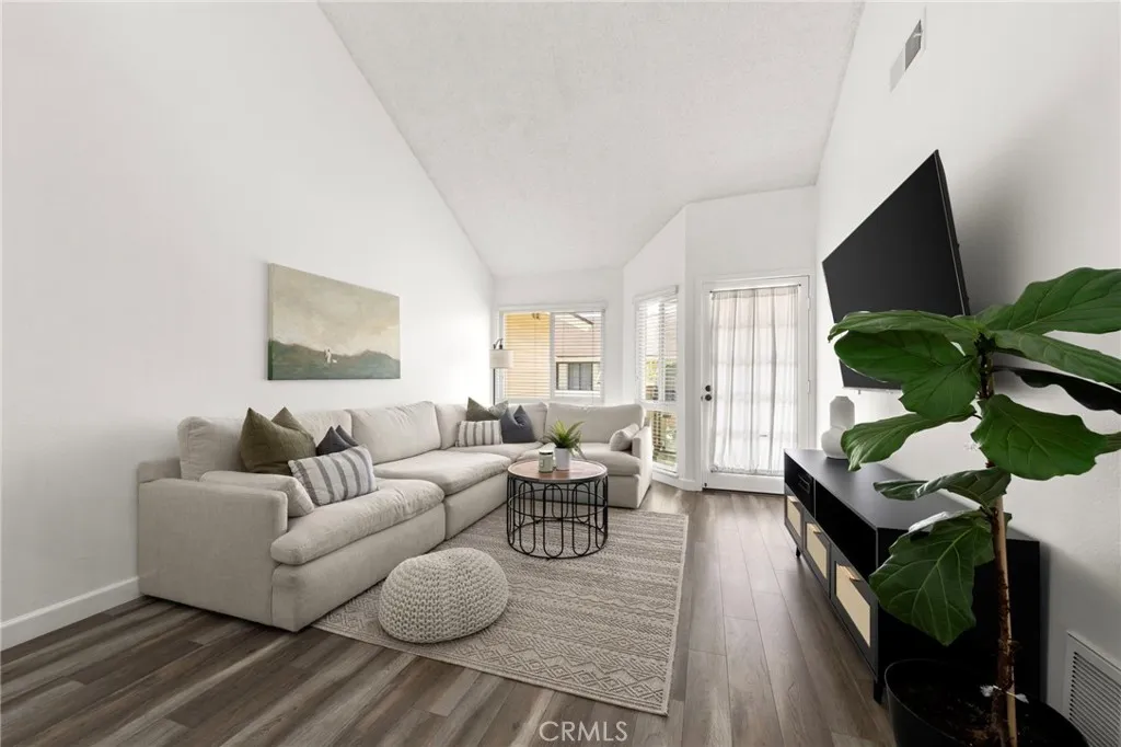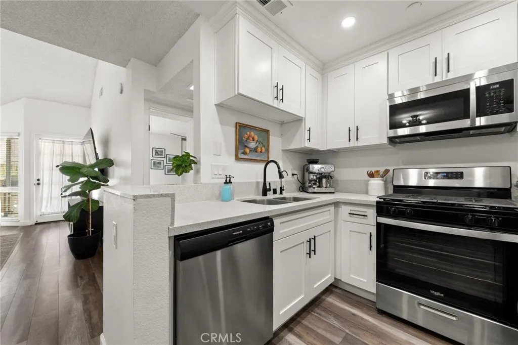 A beautifully reimagined condo where style, comfort, and natural light come together effortlessly. Featuring a bright open floor plan, this fully updated home showcases modern flooring throughout and a stunning kitchen designed to impress, complete with quartz countertops, and crisp white shaker cabinets. The main level offers a convenient downstairs bedroom along with a tastefully updated guest bathroom featuring matching quartz counters and cabinetry, plus a full tub and shower perfect for guests or multi-generational living. Upstairs, the airy loft-style primary suite is a true retreat, boasting soaring ceilings, abundant natural sunlight, a spacious closet, and a private powder bathroom, enhanced by new skylights that further brighten the space. Enjoy your own private patio ideal for relaxing or entertaining and the added convenience of an assigned parking space with a storage cabinet as well as 2 additional permits and ample guest parking. Additional upgrades include a reverse osmosis water filtration system servicing both the fridge and kitchen sink, central A/C and heating that are only one year old, and a washer and dryer also just one year old. Exceptional Location in the Guard-Gated Community of Crosspointe Village; The community enhances the lifestyle with a sparkling pool and spa, sunbathing areas, and expansive green spaces perfect for outdoor activities.