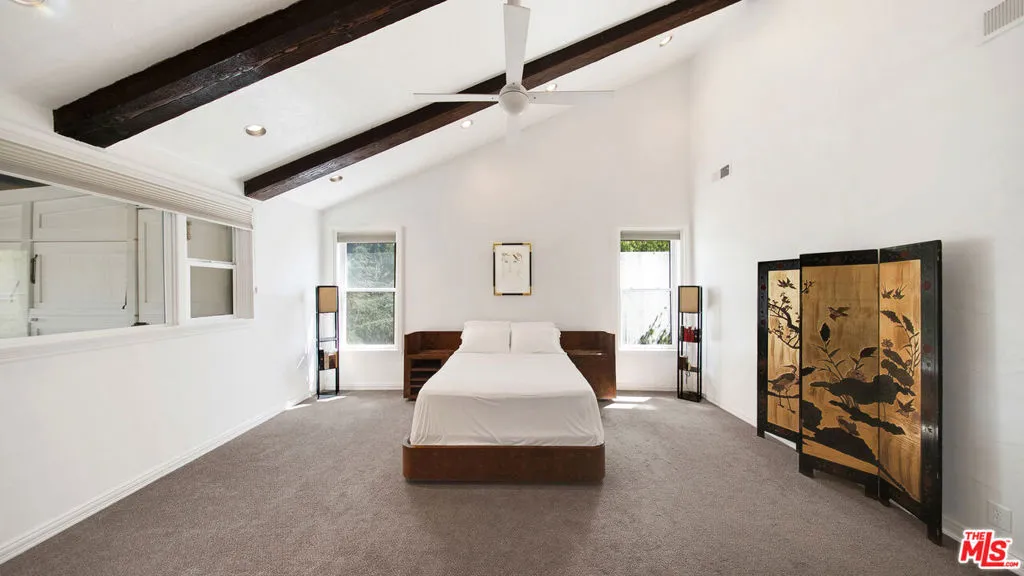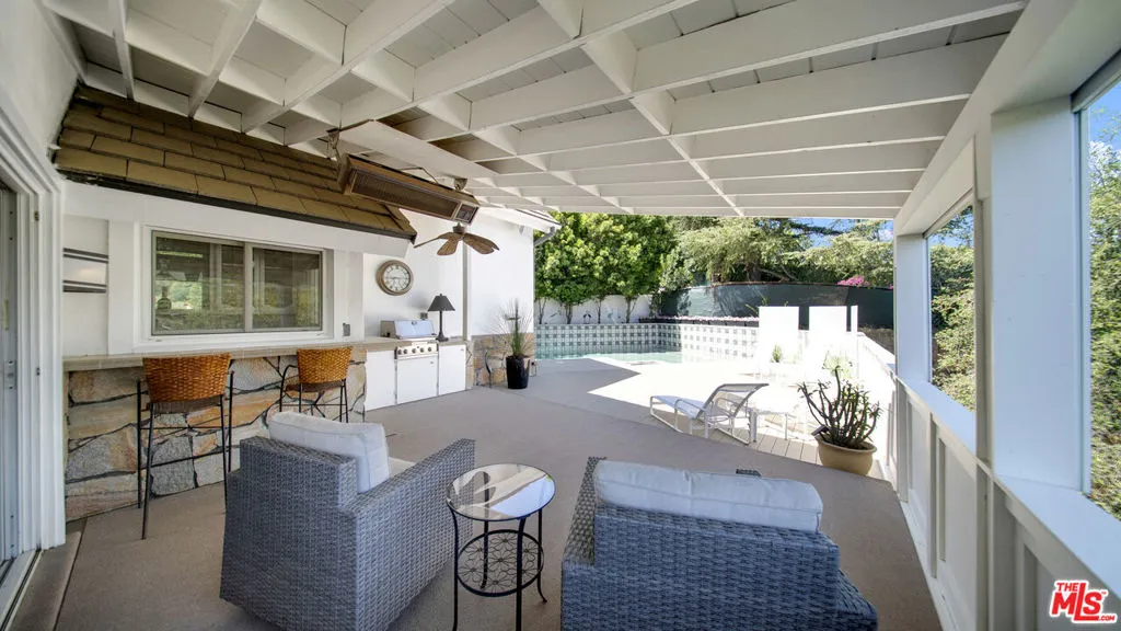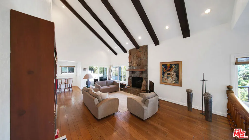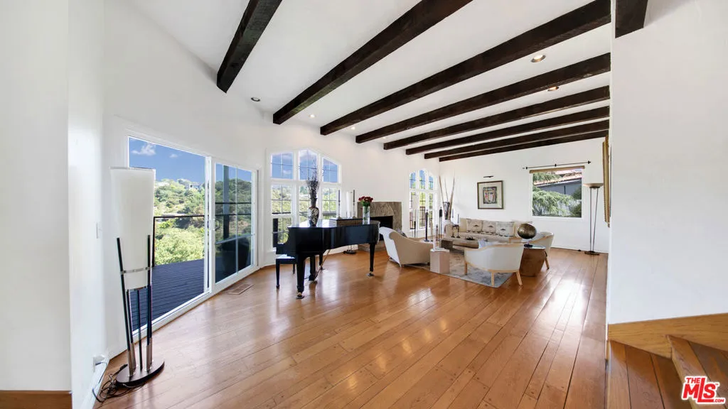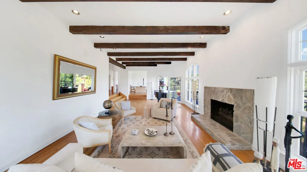 Tucked away on a quiet cul-de-sac in one of Beverly Hills most prestigious enclaves, this inviting estate offers a true sense of retreat, where soft canyon vistas and twinkling city lights create a serene, ever-evolving backdrop. Just moments from the energy of Los Angeles, yet perfectly removed, the home embodies a lifestyle of ease, privacy, and understated sophistication. A warm and inviting sense of arrival unfolds as you step inside, where a thoughtfully designed floor plan balances refined scale with relaxed elegance. Soaring ceilings in the main living areas and primary suite create an airy, light filled ambiance, while walls of glass seamlessly invite the outdoors in, framing tranquil views from nearly every vantage point. Designed for both effortless daily living and elevated entertaining, the residence offers six bedrooms and 6.5 bathrooms, including a serene primary retreat complete with a sitting area or office, a spa-inspired bath, and a private rooftop deck with fireplace and sweeping canyon views an intimate sanctuary to unwind! The lower level features a private steam bath, along with a dedicated gym or theater space, creating a resort caliber experience within. The expansive chef's kitchen, anchored by an oversized island, ideal for entertaining, flows seamlessly into the living and dining spaces, creating a natural gathering place that feels both intimate and open, all thoughtfully oriented toward the home's breathtaking views. Outdoors, a resort-inspired pool and spa create a secluded oasis above the landscape, ideal for sun-soaked afternoons and relaxed evenings under the stars. A private wine cellar adds a refined touch for collectors, while a separate, discreet entrance leads to the lower level featuring a wine cellar, gym and/or theater, and a luxe bathroom with steam shower offering exceptional flexibility for a guest suite, ADU, or private retreat. Defined by its sense of calm, scale, and striking natural beauty, this residence presents a rare opportunity to experience refined living with an effortless, resort like feel.