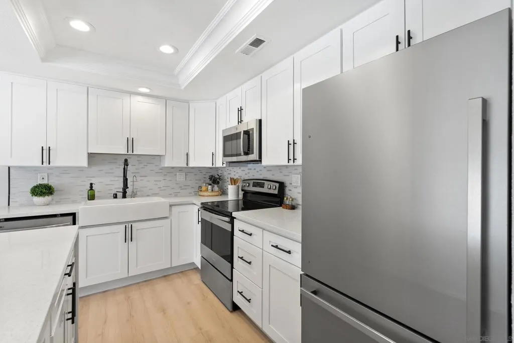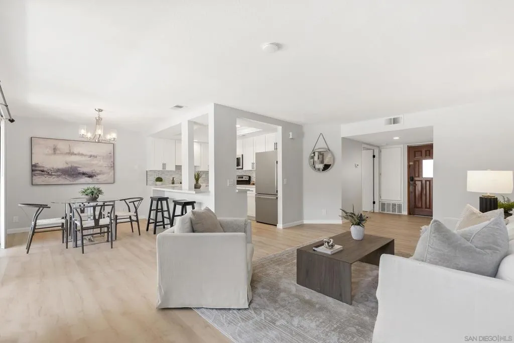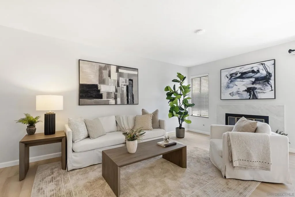 Welcome to Triple Crown - one of Solana Beach's most sought-after communities, tucked quietly west of the I-5. This fully remodeled condo sits in a quiet, private location overlooking a lush greenbelt, offering a peaceful retreat. Inside, you’ll find a fully remodeled kitchen featuring quartz countertops, updated cabinetry, and stainless-steel appliances, while a cozy gas fireplace anchors the living space - perfect for those cool coastal evenings. The spacious primary suite opens directly onto a private patio and includes an ensuite bathroom with a walk-in shower, all-new fixtures, and an updated vanity. A second private patio gives you even more outdoor space to breathe. Practical details are just as polished: stacked in-unit washer/dryer and a private detached one-car garage. Step outside and you're minutes from the Del Mar Racetrack, the Cedros Design District, boutique shops, and some of the best dining the North County coast has to offer. And just a 3 minute car ride or a 20-minute stroll to Dog Beach. Whether you're walking the shoreline or grabbing a table at a favorite local spot, this location puts it all within reach without sacrificing the quiet, tucked-away feel that makes Triple Crown so special.