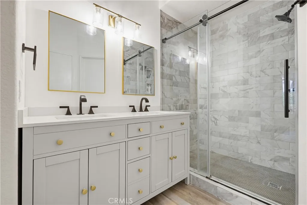 Updated and Improved lower-level beauty blessed with a desirable single level floor plan, remodeled Kitchen and baths, and ideally located in the peaceful Seagate Colony community in the Laguna Audubon neighborhood nestled up to picturesque Laguna Canyon and just 10 minutes from iconic Laguna Beach and Village. Lush greenspaces and walking paths provide a welcoming first impression leading you to the private gated front patio. Step inside and soak in the open concept floor plan with sleek luxury vinyl plank flooring and a neutral palette setting the stage for an ideal living space. The kitchen has been beautifully remodeled with modern European cabinetry, updated hardware and pulls, gorgeous Granite countertops, Stainless Steel appliances, breakfast bar, and recessed lighting, all open to the dining and living areas. The spacious primary suite includes a prized walk-in closet and a stunning recently remodeled primary bathroom with timeless shaker cabinetry, updated hardware and pulls, Quart-topped dual vanity, handsome faucets and fixtures, framed vanity mirrors, upgraded lighting, and a gorgeous walk-in shower enclosure with stunning subway tile surround and frameless glass enclosure. This floorplan includes a secondary bedroom with closet and an updated guest bath with handsome Quartz topped vanity, upgraded faucets and fixtures, and framed vanity mirror. The spacious enclosed front patio includes a convenient laundry closet with full size washer and dryer hookups and newer 2021 water heater and is a peaceful space for relaxing and entertaining friends and family. Home includes 1 single car garage #211, plus 1 uncovered reserved parking space #191. Located in the coveted Laguna Beach Unified School District! Well maintained HOA amenities include an abundance of guest parking, fitness room, two pools and spas, clubhouse, manicured grounds, HOA includes trash, and the HOA completed a community wide repipe. Superbly located close to local parks, and Aliso Viejo Country Club and Aquatic Center, easy access to numerous hiking and biking trails, close to shopping, Farmer’s Market, and dining and entertainment at Aliso Viejo Town Center, easy Toll Road access, and just minutes from Irvine and local beaches.