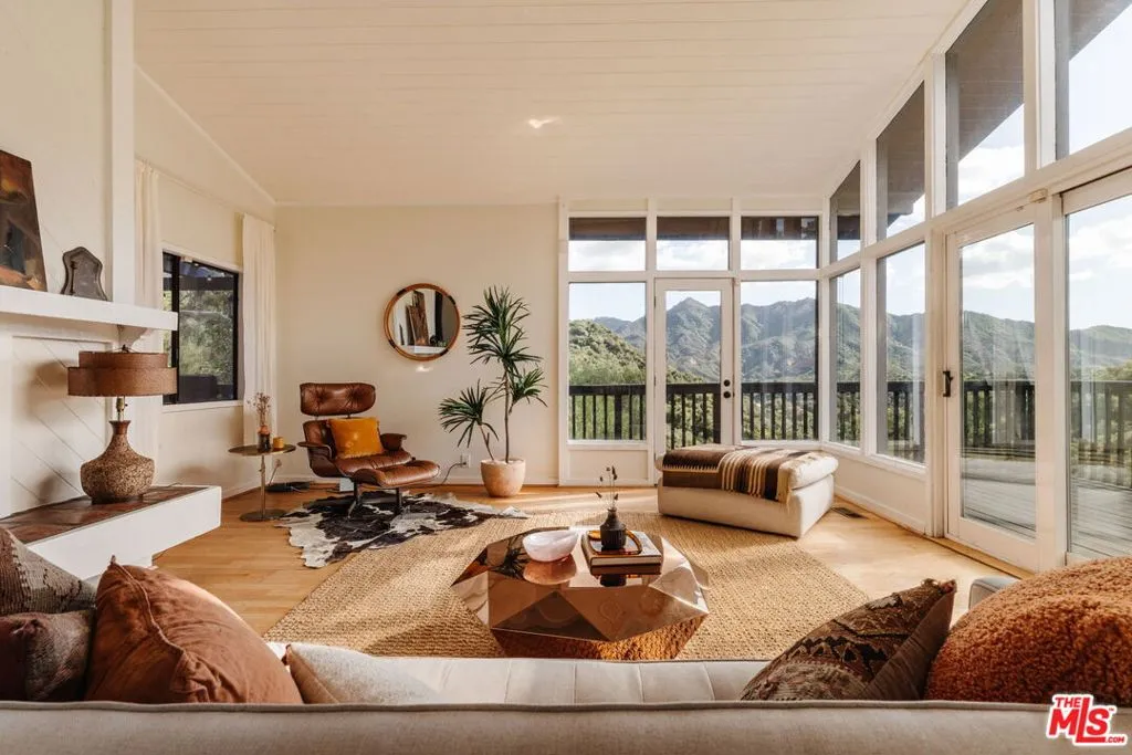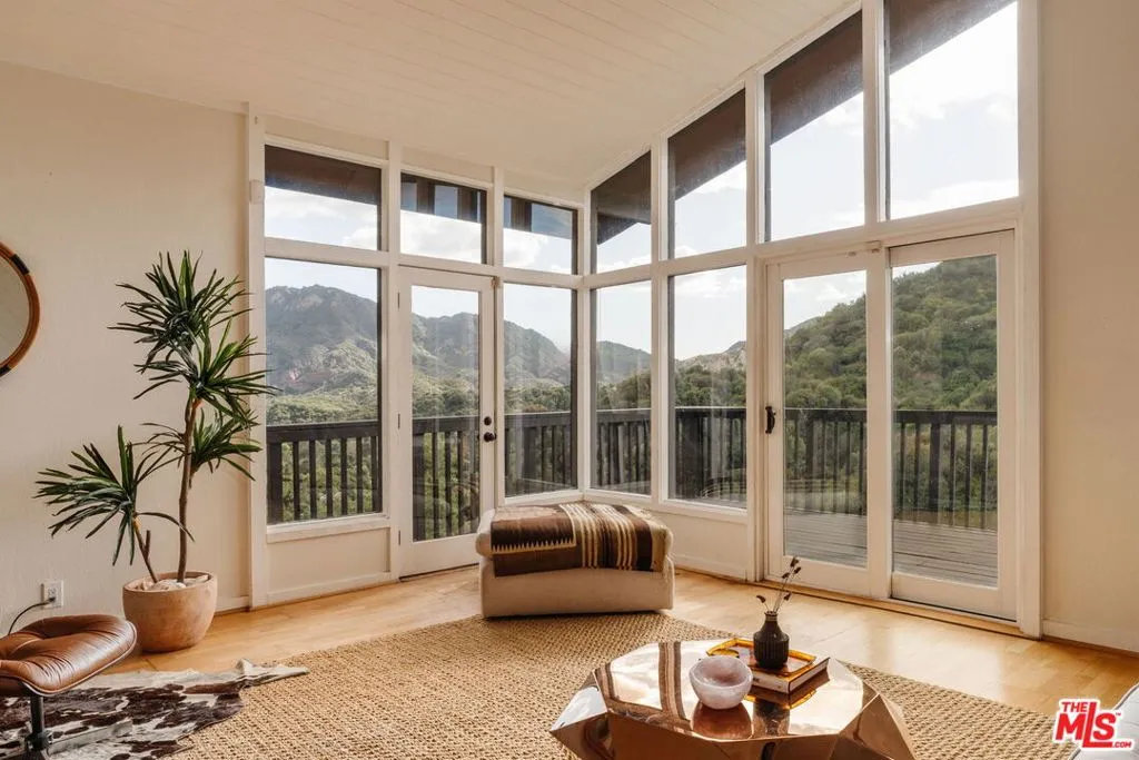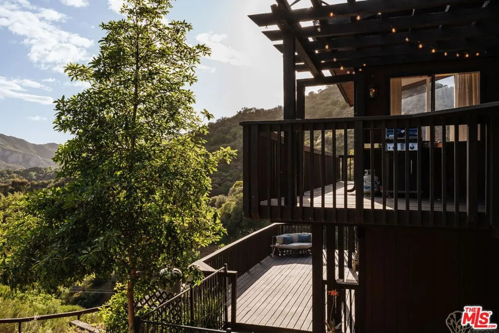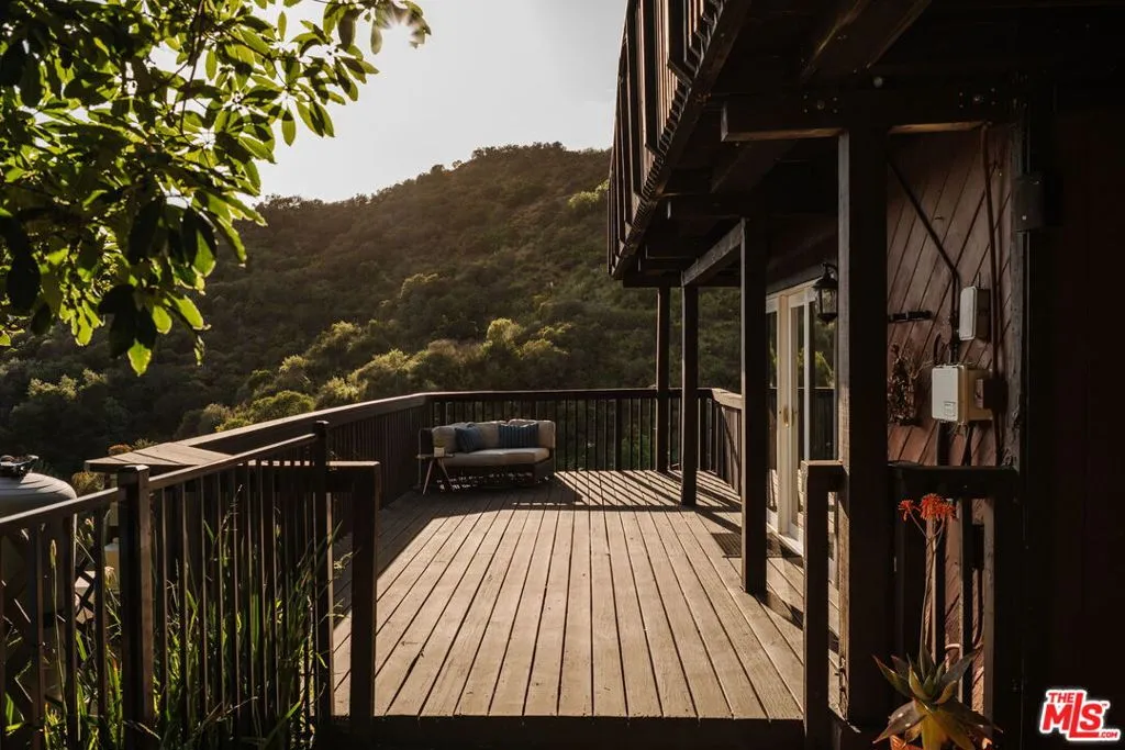 Escape to your own private retreat nestled in the highly sought-after Old Canyon neighborhood of Topanga. This breathtaking residence invites you to unwind in a heated saltwater pool tucked into a sprawling acre of land, with panoramic views by day and a celestial blanket of stars at night. At the end of a private and tranquil tree-lined driveway, you arrive at an expansive, architectural gem of a home. Featuring four generous bedrooms (one of which can be used as a junior ADU/guest unit), three full bathrooms, this Topanga home is blessed with some of the best views the canyon has to offer. Beaming with natural light, the living room makes your jaw drop with soaring ceilings and dramatic floor-to-ceiling windows. A wood-burning fireplace, a huge deck and a custom 70s bar sets the vibe for relaxation and entertaining. The kitchen, like the rest of the home, has stunning cross-canyon views and flows into a sun-filled dining room with vaulted ceilings and French doors. Multiple wrap-around decks and a spacious fenced yard makes this a special place to gather with friends and family. Located less than 15 minutes from the famed Malibu beaches and the conveniences of Calabasas and Woodland Hills, this Topanga retreat offers the perfect blend of seclusion and accessibility. Powered by a solar array with a Tesla Powerwall for optimal energy efficiency and reliable backup power, the property also provides ample parking and a garage equipped with an EV charging port. Come experience this natural oasis for yourself, a rare combination of privacy and views in an unbeatable location!