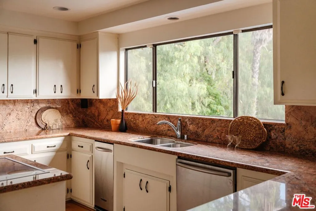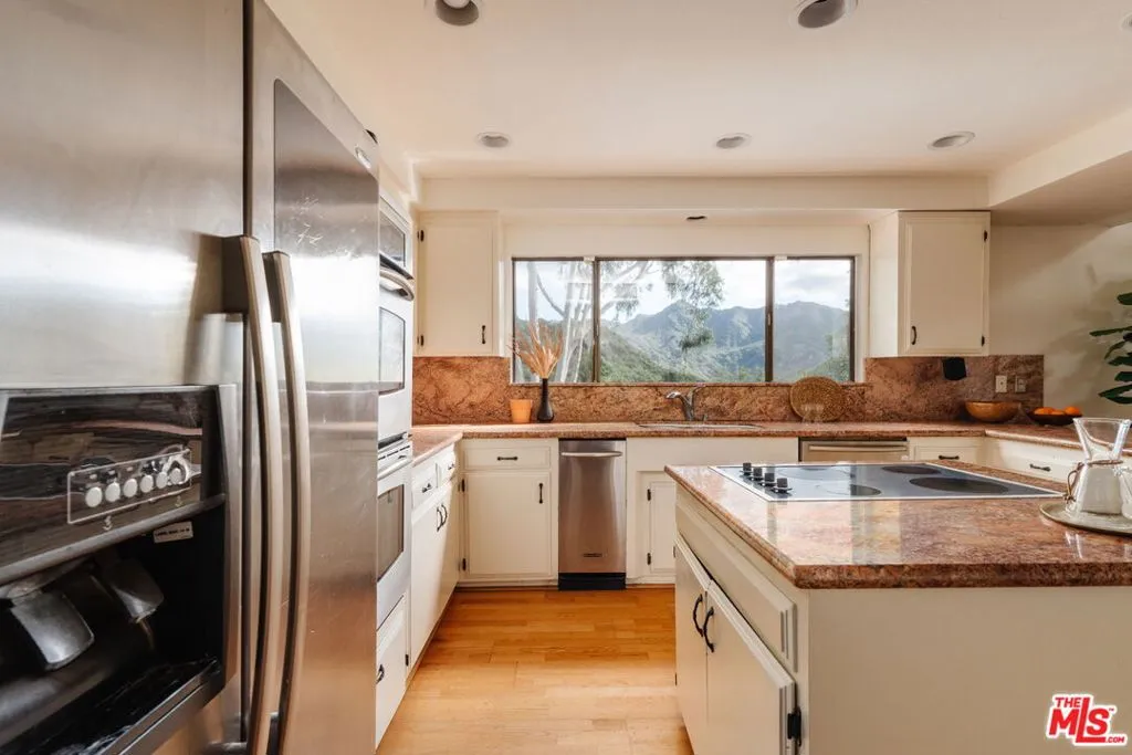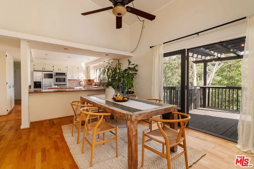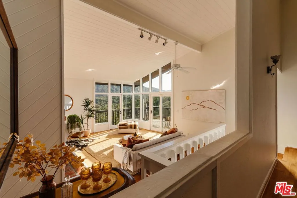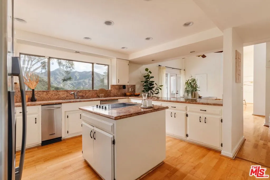 Escape to your own private retreat nestled in the highly sought-after Old Canyon neighborhood of Topanga. This breathtaking residence invites you to unwind in a heated saltwater pool tucked into a sprawling acre of land, with panoramic views by day and a celestial blanket of stars at night. At the end of a private and tranquil tree-lined driveway, you arrive at an expansive, architectural gem of a home. Featuring four generous bedrooms (one of which can be used as a junior ADU/guest unit), three full bathrooms, this Topanga home is blessed with some of the best views the canyon has to offer. Beaming with natural light, the living room makes your jaw drop with soaring ceilings and dramatic floor-to-ceiling windows. A wood-burning fireplace, a huge deck and a custom 70s bar sets the vibe for relaxation and entertaining. The kitchen, like the rest of the home, has stunning cross-canyon views and flows into a sun-filled dining room with vaulted ceilings and French doors. Multiple wrap-around decks and a spacious fenced yard makes this a special place to gather with friends and family. Located less than 15 minutes from the famed Malibu beaches and the conveniences of Calabasas and Woodland Hills, this Topanga retreat offers the perfect blend of seclusion and accessibility. Powered by a solar array with a Tesla Powerwall for optimal energy efficiency and reliable backup power, the property also provides ample parking and a garage equipped with an EV charging port. Come experience this natural oasis for yourself, a rare combination of privacy and views in an unbeatable location!